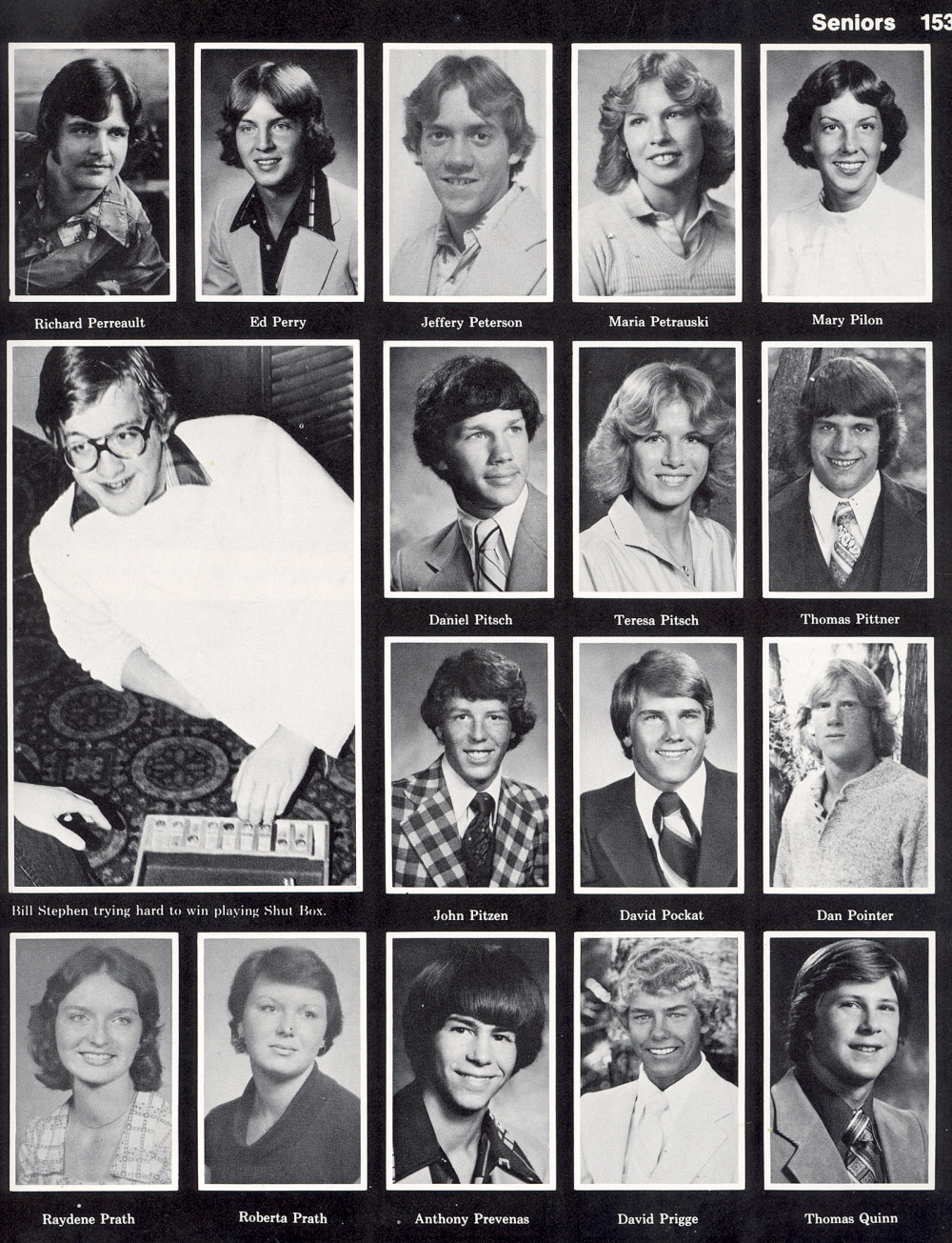 High School, Page 153: Richard Perreault, Ed Perry, Jeffery Peterson, Maria Petrauski, Mary Pilon, Daniel Pitsch, Teresa Pitsch, Thomas Pittner, John Pitzen, David Pocket, Dan Pointer, Raydene Prath, Roberta Prath, Anthony Prevenas, David Prigge, Thomas Quinn.