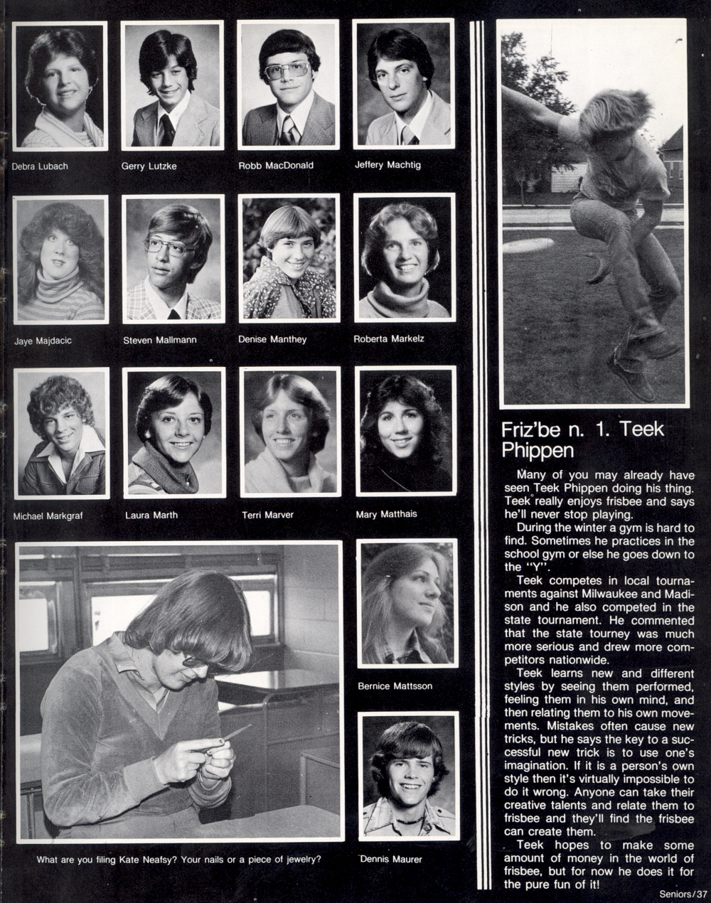 High School, Page 37: Debra Lubach, Gerry Lutzke, Robb MacDonald, Jeffery Machtig, Jaye Majdacic, Steven Mallmann, Denise Manthey, Roberta Markelz, Michael Markgraf, Laura Marth, Terri Marver, Mary Matthias, Bernice Mattsson, Dennis Maurer.