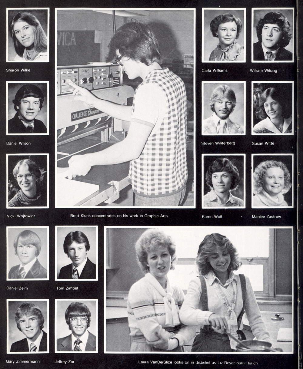 1979 Sheboygan South High School, Page 50: Sharon Wilke, Carla Williams, William Wilsing, Daniel Wilson, Steven Winterberg, Susan Witte, Vicki Wojtowicz, Karen Wolf, Marilee Zastrow, Daniel Zelm, Tom Zimbal, Gary Zimmermann, Jeffrey Zor.