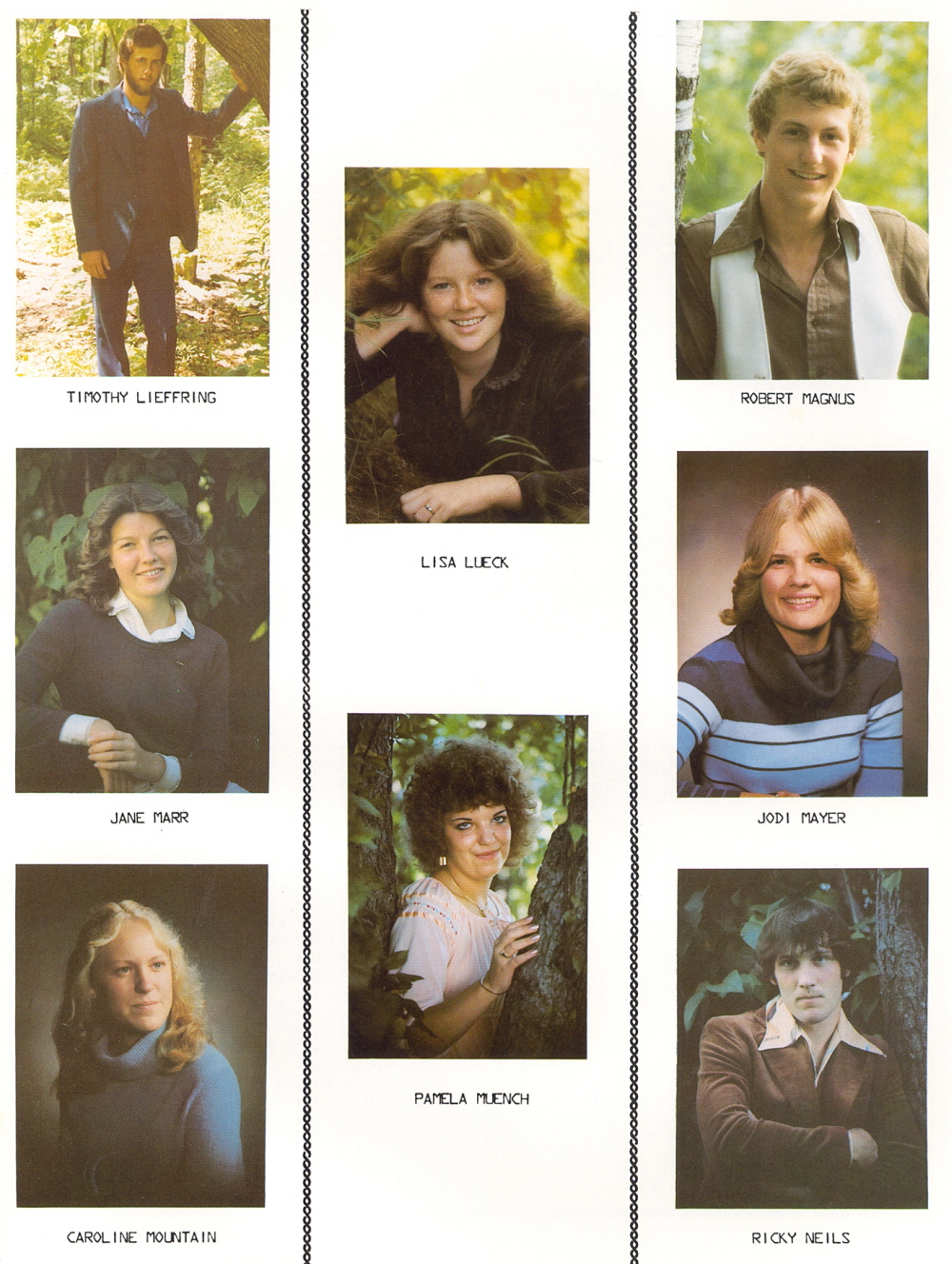 1980 Elkhart Lake High School, Page 107: Timothy Lieffring, Lisa Lueck, Robert Magnus, Jane Marr, Jodi Mayer, Caroline Mountain, Pamela Muench, Ricky Neils.