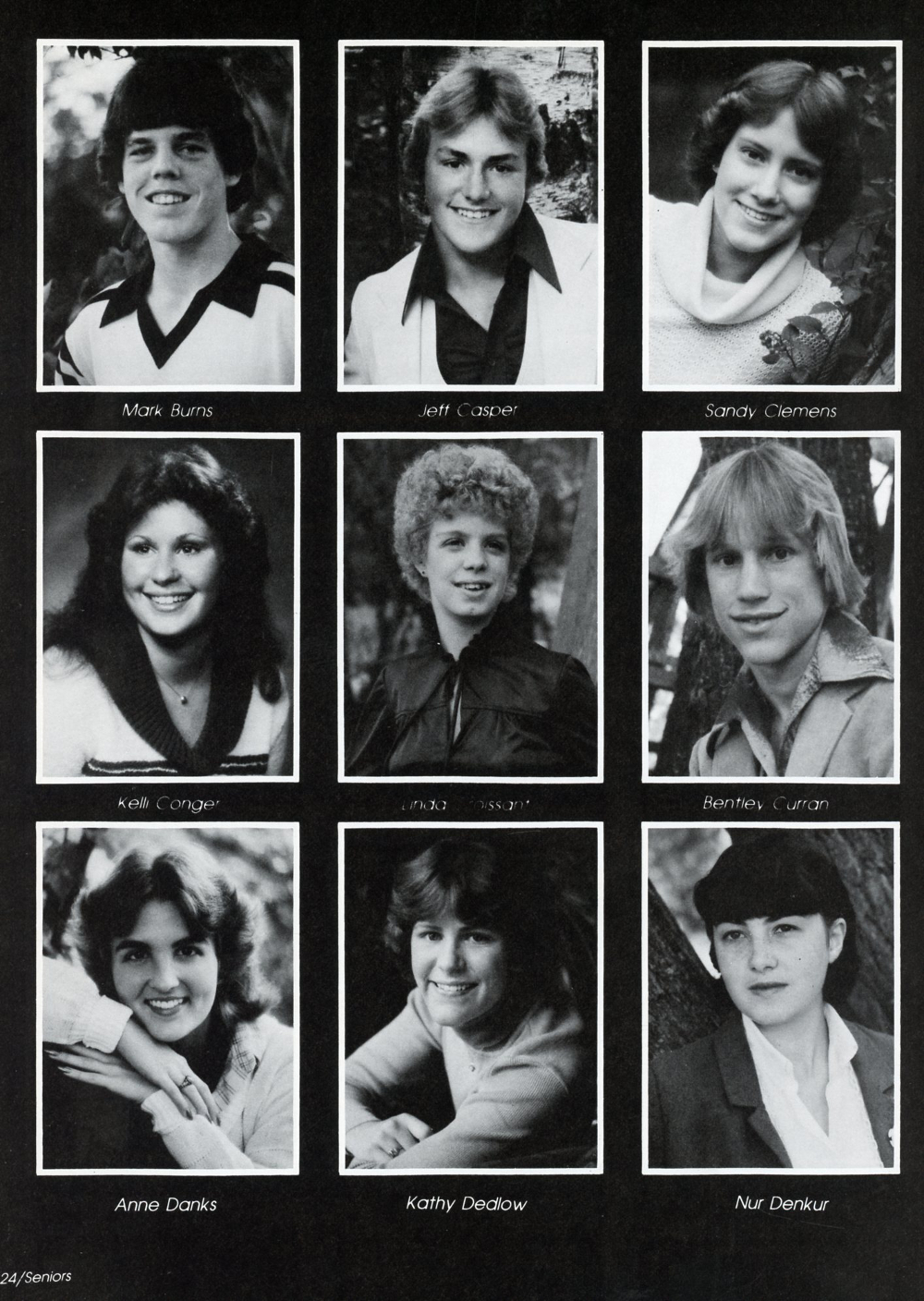 1980 Sheboygan Falls High School Yearbook, page 124: Mark Burns, Jeff Casper, Sandy Clemens, Kelli Conger, Linda Croissant, Bentley Curran, Anne Danks, Kathy Dedlow, Nur Denkur.