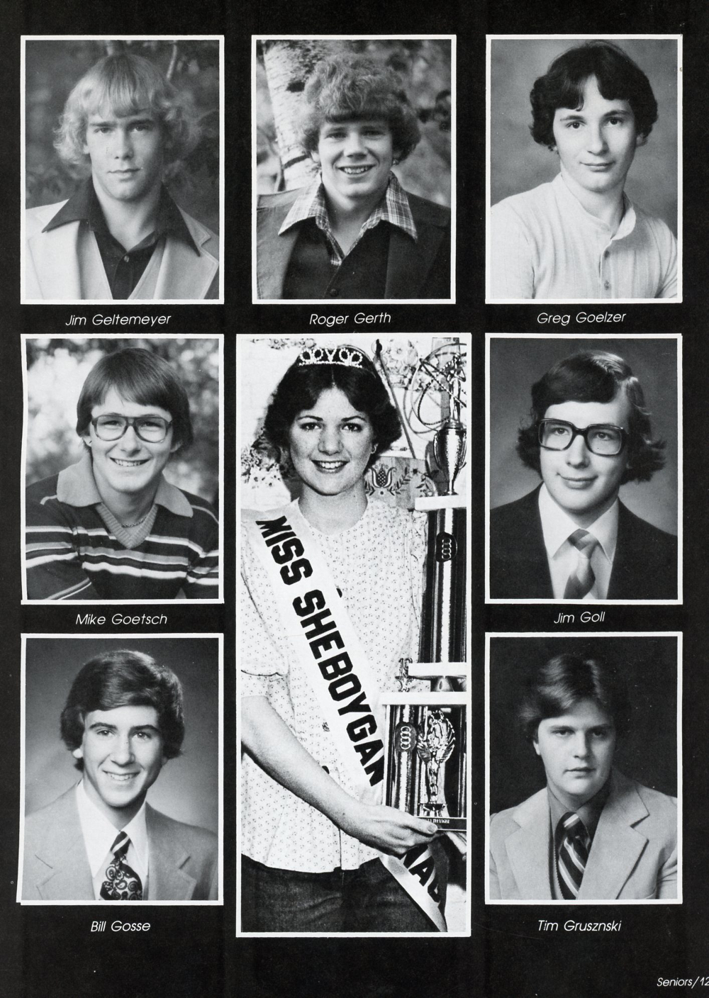1980 Sheboygan Falls High School Yearbook, page 127: Jim Geltemeyer, Roger Gerth, Greg Goelzer, Mike Goetsch, Jim Goll, Bill Gosse, Tim Grusznski.