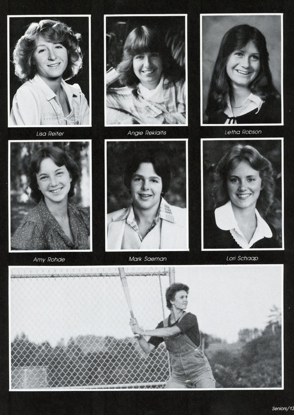 1980 Sheboygan Falls High School Yearbook, page 135: Lisa Reiter, Angie Reklaitis, Letha Robson, Amy Rohde, Mark Saeman, Lori Schaap.