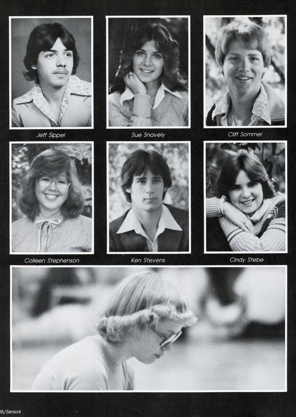 1980 Sheboygan Falls High School Yearbook, page 138: Jeff Sippel, Sue Snavely, Cliff Sommer, Colleen Stephenson, Ken Stevens, Cindy Strebe.
