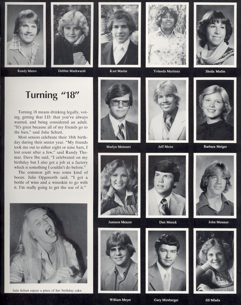 1980 Sheboygan North High School, Page 149: Randy Marco, Debbie Markwardt, Kurt Martin, Yolanda Martinez, Sheila Matlin, Marlyn Meinnert, Jeff Meise, Barbara Meiger, Jamison Menzer, Dan Mesick, John Messner, William Meyer, Gary Mirsberger, Jill Mlada.