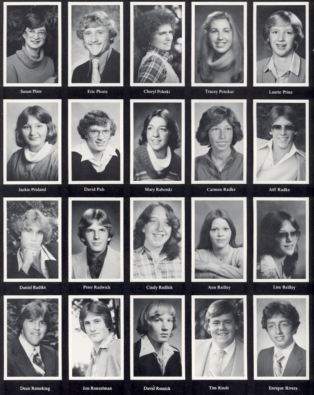 1980 Sheboygan North High School, Page 152: Susan Plate, Eric Ploetz, Cheryl Poleski, Tracey Potokar, Laurie Prinz, Jackie Prisland, David Puls, Mary Rabotski, Carmen Radke, Jeff Radke, Daniel Radtke, Peter Radwick, Cindy Redlick, Ann Reilley, Lisa Reilley, Dean Reineking, Jon Renzelman, David Resnick, Tim Rindt, Enrique Rivera.