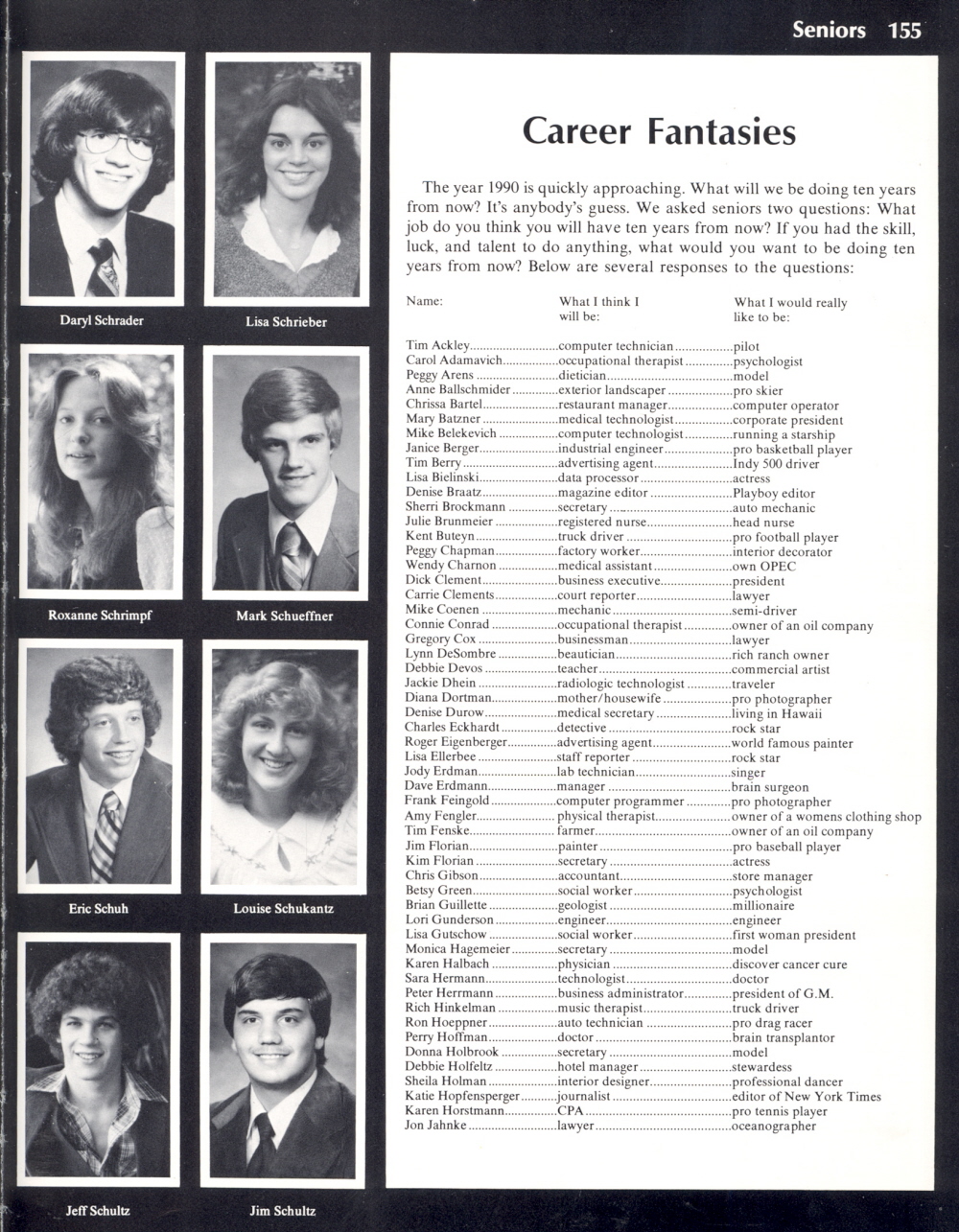 1980 Sheboygan North High School, Page 155: Daryl Schrader, Lisa Schrieber, Roxanne Schrimpf, Mark Schueffner, Eric Schuh, Louise Schukantz, Jeff Schultz, Jim Schultz.