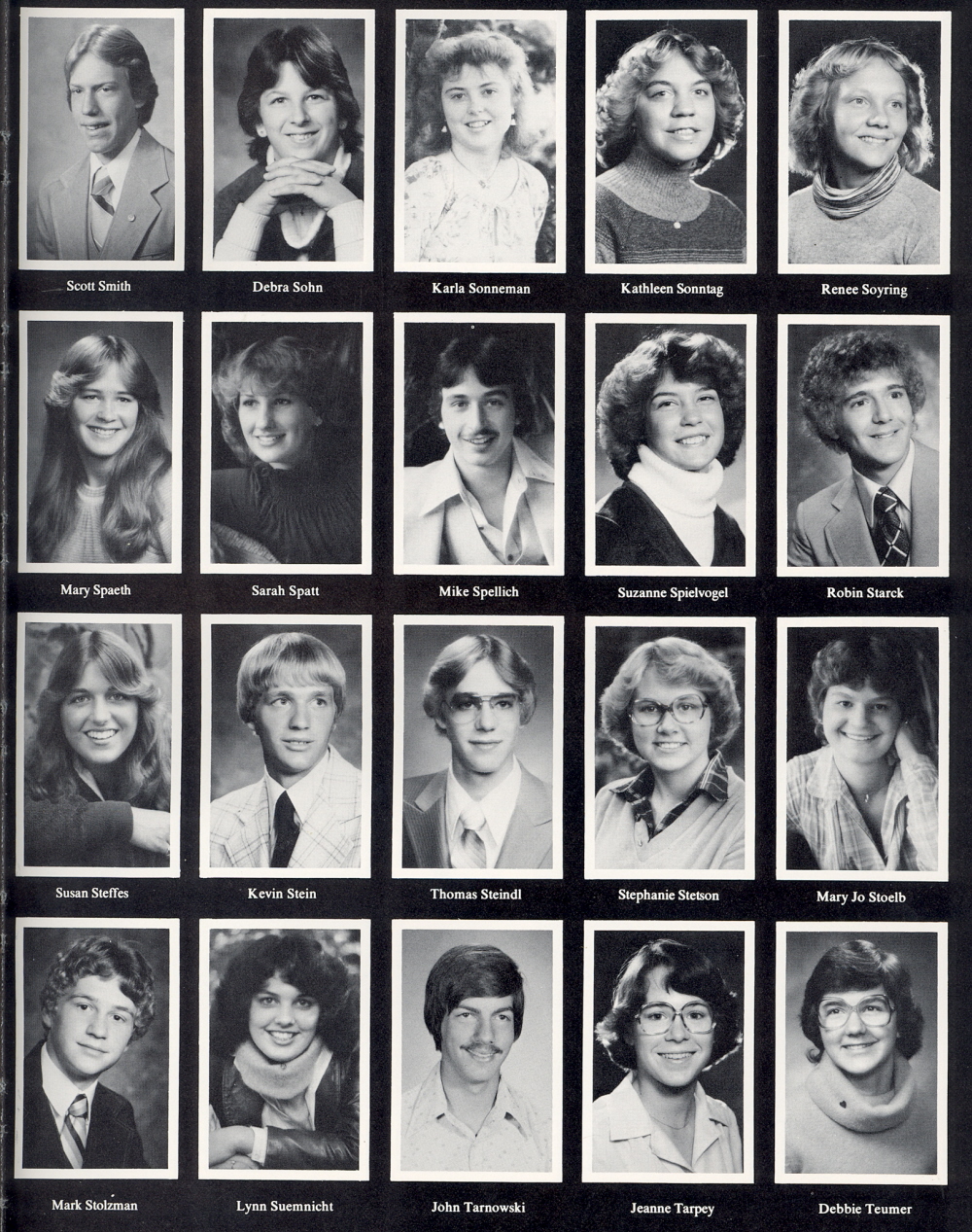 1980 Sheboygan North High School, Page 157: Scott Smith, Debra Sohn, Karla Sonneman, Kathleen Sonntag, Renee Soyring, Mary Spaeth, Sarah Spatt, Mike Spellich, Suzanne Spielvogel, Robin Starck, Susan Steffes, Kevin Stein, Thomas Steindl, Stephanie Stetson, Mary Jo Stoelb, Mark Stolzman, Lynn Suemnicht, John Tarnowski, Jeanne Tarpey, Debbie Teumer.