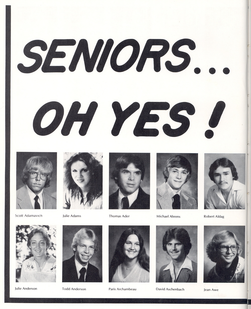 1980 Sheboygan South High School, Page 18: Scott Adamavich, Julie Adams, Thomas Ader, Michael Ahrens, Robert Aldag, Julie Anderson, Todd Anderson, Paris Archambeau, David Aschenbach, Jean Awe.