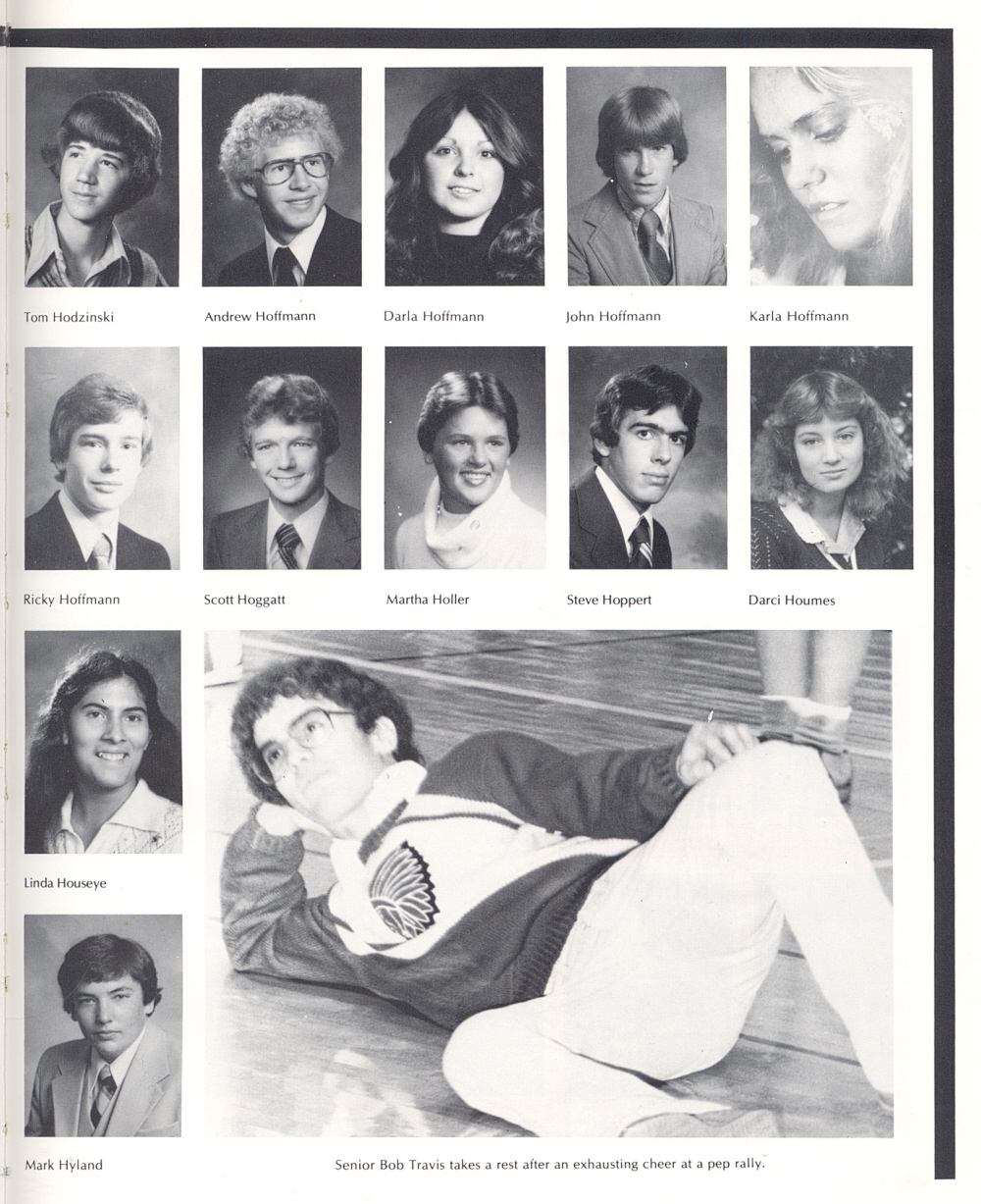 1980 Sheboygan South High School, Page 29: Tom Hodzinski, Andrew Hoffmann, Darla Hoffmann, John Hoffmann, Karla Hoffmann, Ricky Hoffmann, Scott Hoggatt, Martha Holler, Steve Hoppert, Darci Houmes, Linda Houseye, Mark Hyland.