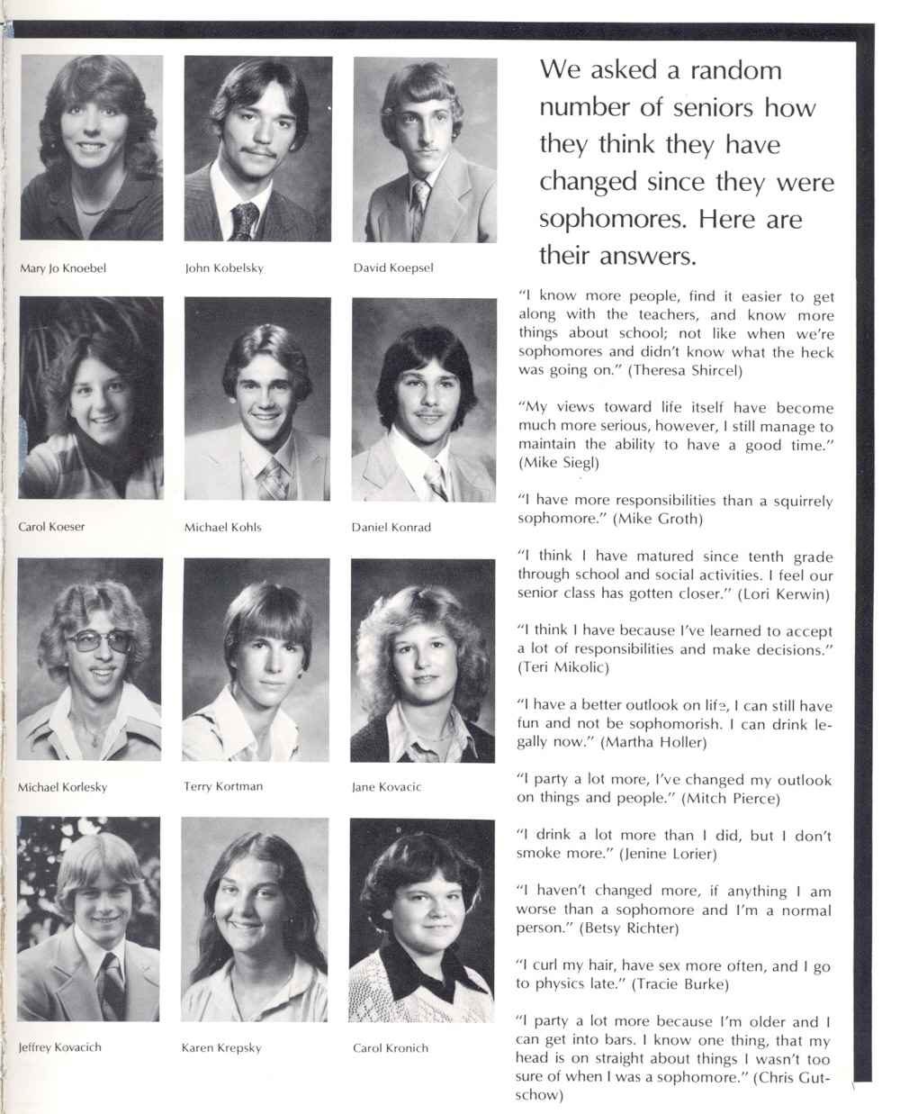 1980 Sheboygan South High School, Page 33: Mary Jo Knoebel, John Kobelsky, David Koepsel, Carol Koeser, Michael Kohls, Daniel Konrad, Michael Korlesky, Terry Kortman, Jane Kovacic, Jeffrey Kovacich, Karen Krepsky, Carol Kronich.