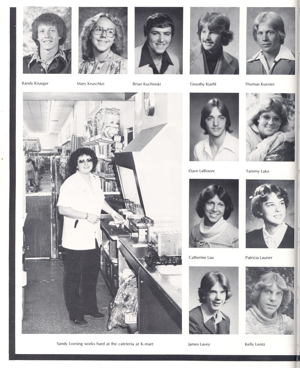 1980 Sheboygan South High School, Page 36: Randy Krueger, Mary Kruschke, Brian Kuchinski, Timothy Kuehl, Thomas Kuester, Dave LaBouve, Tammy Lake, Catherine Lau, Patricia Launer, James Lavey, Kelly Lentz.