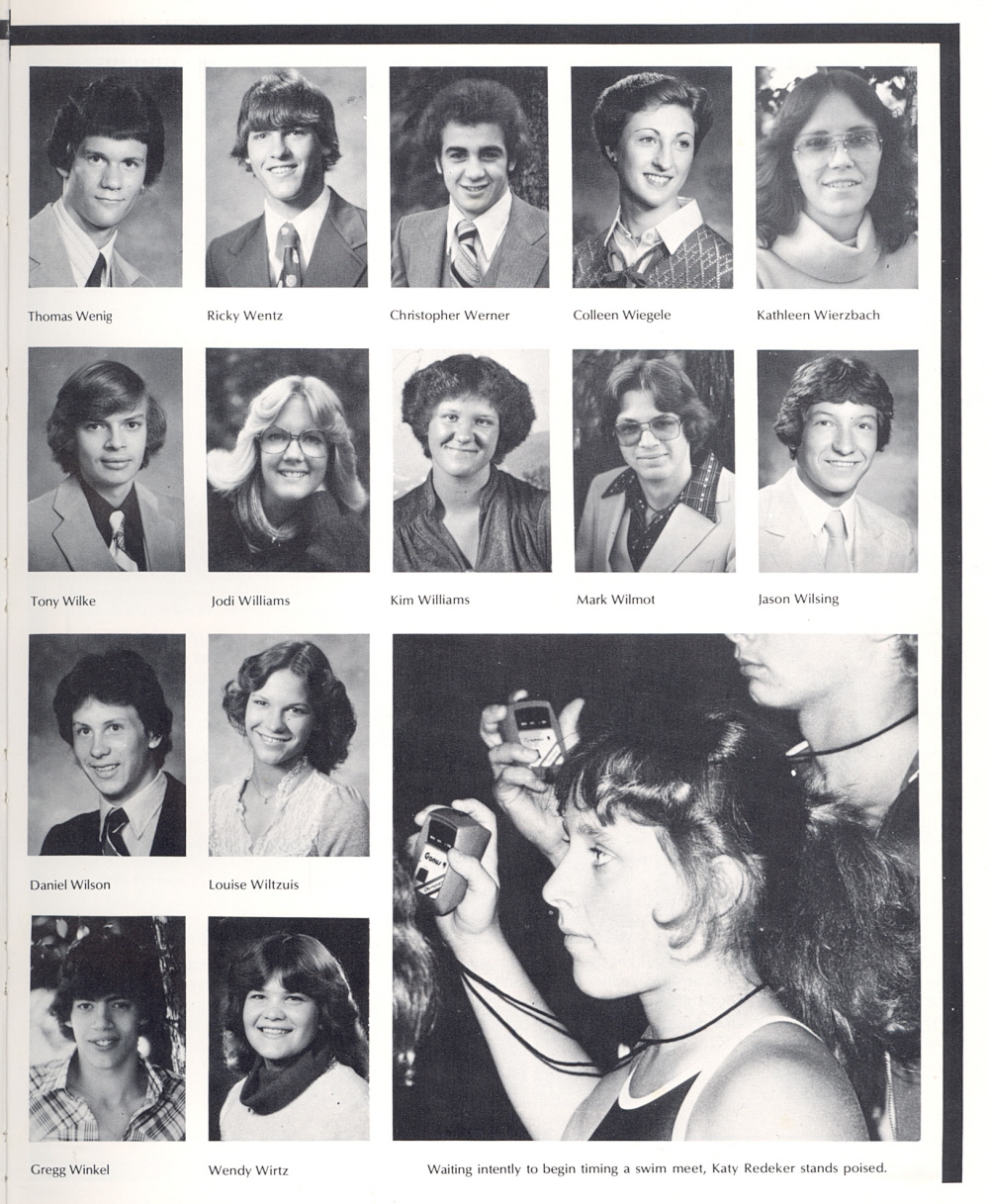 1980 Sheboygan South High School, Page 51: Thomas Wenig, Ricky Wentz, Christopher Werner, Colleen Wiegele, Kathleen Wierzbach, Tony Wilke, Jodi Williams, Kim Williams, Mark Wilmot, Jason Wilsing, Daniel Wilson, Louise Wiltzuis, Gregg Winkel, Wendy Wirtz.
