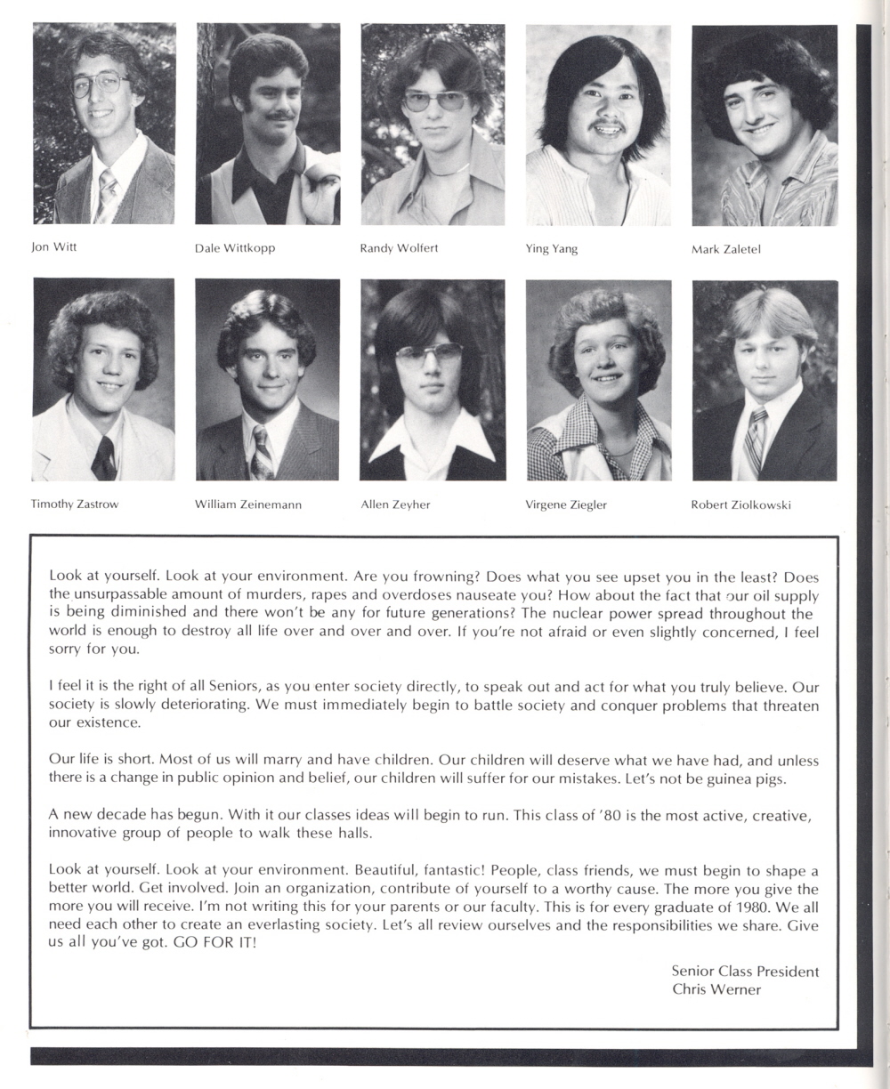 1980 Sheboygan South High School, Page 52: Jon Witt, Dale Wittkopp, Randy Wolfert, Ying Yang, Mark Zaletel, Timothy Zastrow, William Zeinemann, Allen Zeyher, Virgene Ziegler, Robert Ziolkowski.