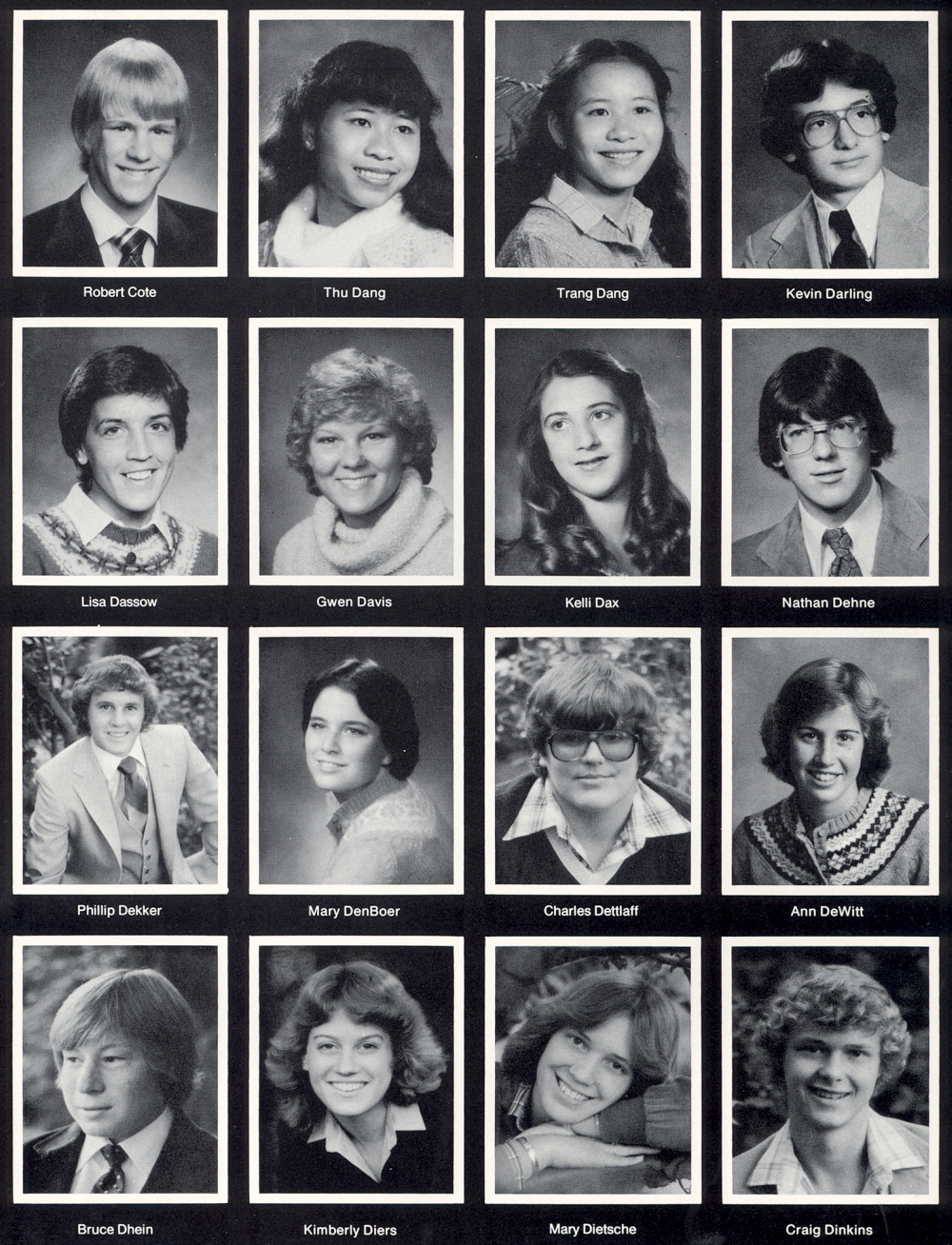 1981 Sheboygan North High School, Page 102. Margaret Brickner, Lori Broeckel, Terese Brost, Sherry Brousseau, Jennifer Burgin, Kellene Campbell, Patrick Campbell, Hugo Caponi, David Castellan, Karen Chapman, Deborah Christianson, Jana Cobb, Ann Coenen, Ellen Coffey, Gail Conger, Richard Corcoran.