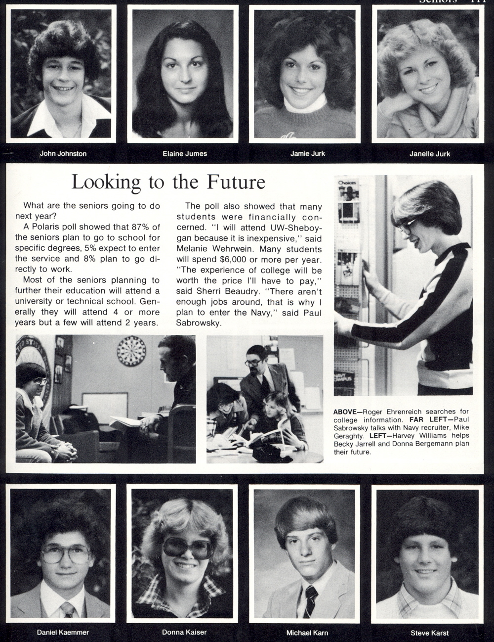 1981 Sheboygan North High School, Page 111. John Johnston, Elaine Jumes, Jamie Jurk, Janelle Jurk, Daniel Kaemmer, Donna Kaiser, Michael Karn, Steve Karst.
