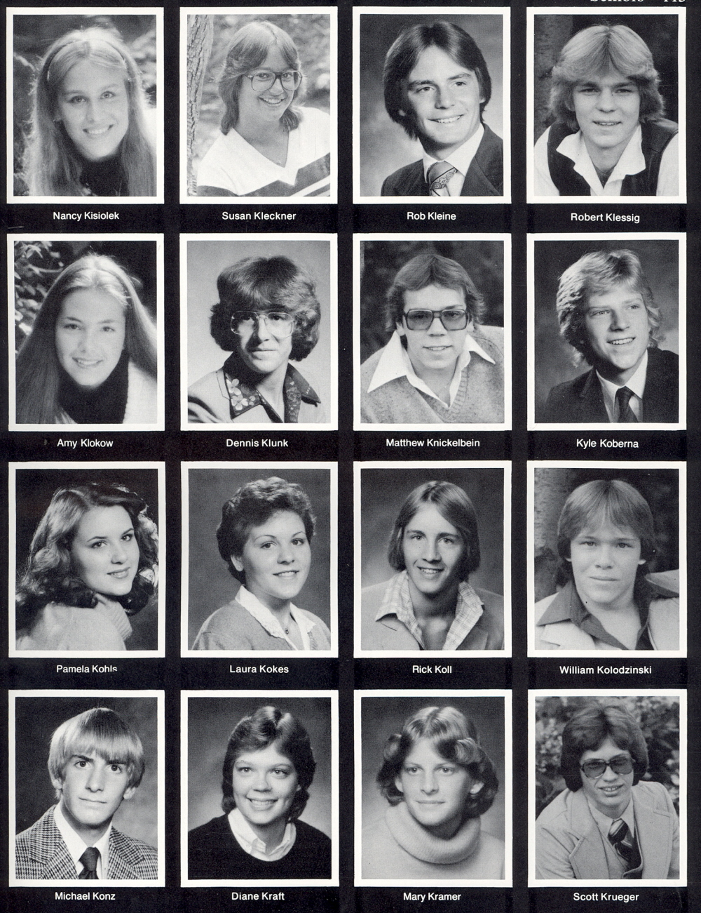 1981 Sheboygan North High School, Page 113. Nancy Kisiolek, Susan Kleckner, Rob Kleine, Robert Klessig, Amy Klokow, Dennis Klunk, Matthew Knickelbein, Kyle Koberna, Pamela Kohls, Laura Kokes, Rick Koll, William Kolodzinski, Michael Konz, Diane Kraft, Mary Kramer, Scott Krueger.