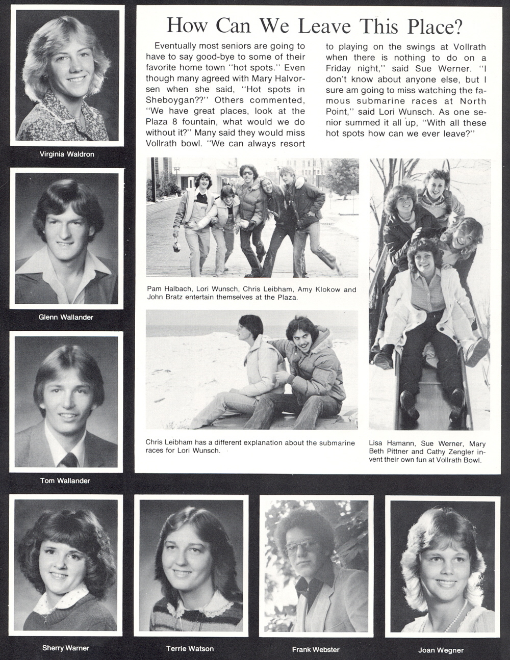 1981 Sheboygan North High School, Page 130. Virginia Waldron, Glenn Wallander, Tom Wallander, Sherry Warner, Terrie Watson, Frank Webster, Joan Wegner.
