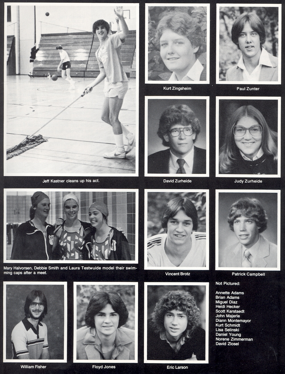 1981 Sheboygan North High School, Page 133. Kurt Zingsheim, Paul Zunter, David Zurheide, Judy Zurheide, Vincent Brotz, Patrick Campbell, William Fisher, Floyd Jones, Eric Larson, Annette Adams, Brian Adams, Miguel Diaz, Heidi Hecker, Scott Karstaedt, John Majerle, Diann Montemayor, Kurt Schmidt, Lisa Selinski, Daniel Young, Norene Zimmerman, David Zlosel.