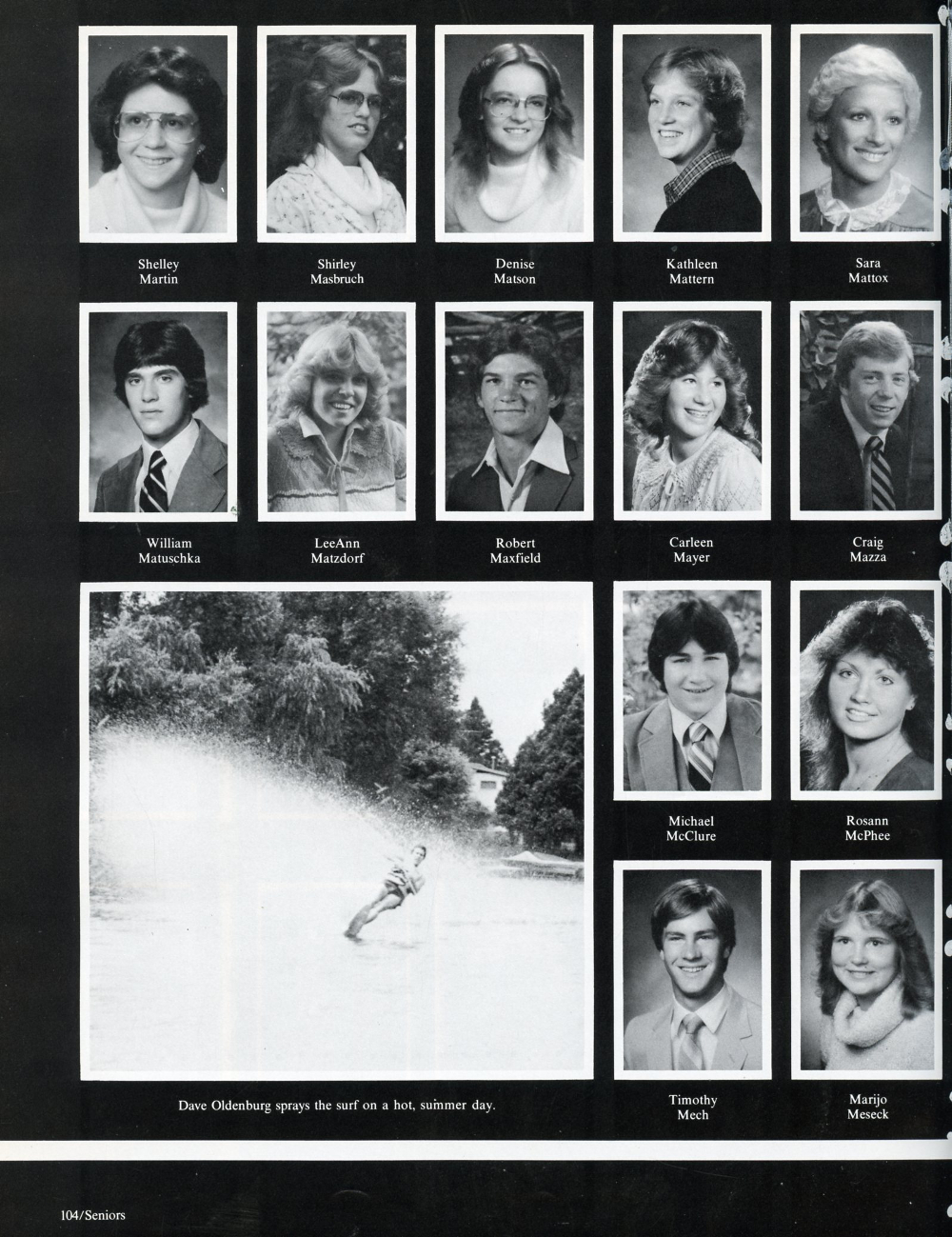 1981 Sheboygan South High School, Page 104: Shelley Martin, Shirley Masbruch, Denise Matson, Kathleen Mattern, Sara Mattox, William Matuschka, LeeAnn Matzdorf, Robert Maxfield, Carleen Mayer, Craig Mazza, Michael McClure, Rosann McPhee, Timothy Mech, Marijo Meseck.
