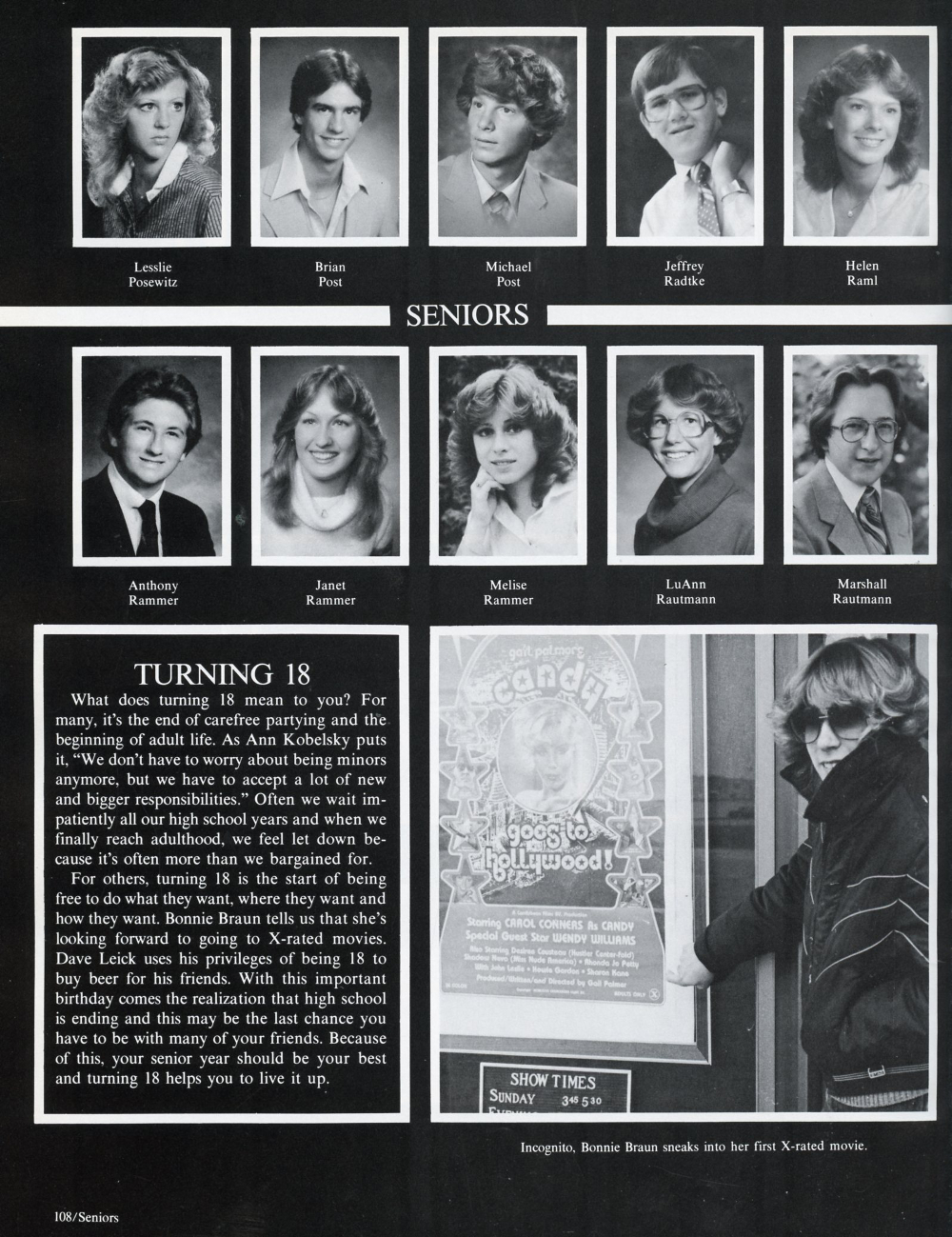 1981 Sheboygan South High School, Page 108: Lesslie Posewitz, Brian Post, Michael Post, Jeffrey Radtke, Helen Raml, Anthony Rammer, Janet Rammer, Melise Rammer, LuAnn Rautmann, Marshall Rautmann.