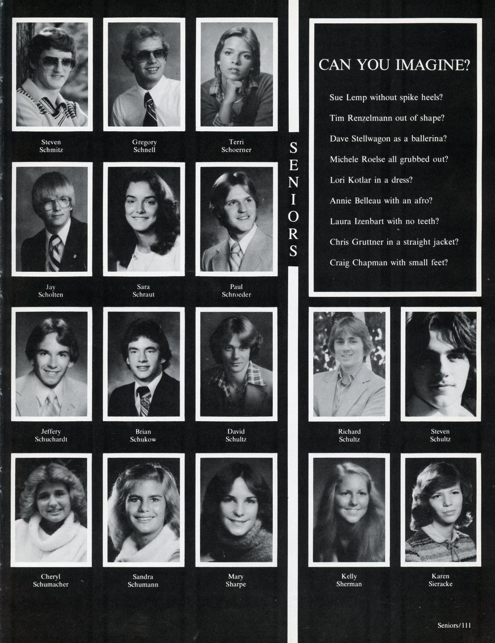 David Schultz, Richard Schultz, Steven Schultz, Cheryl Schumacher, Sandra Schumann, Mary Sharpe, Kelly Sherman, Karen Sieracke.