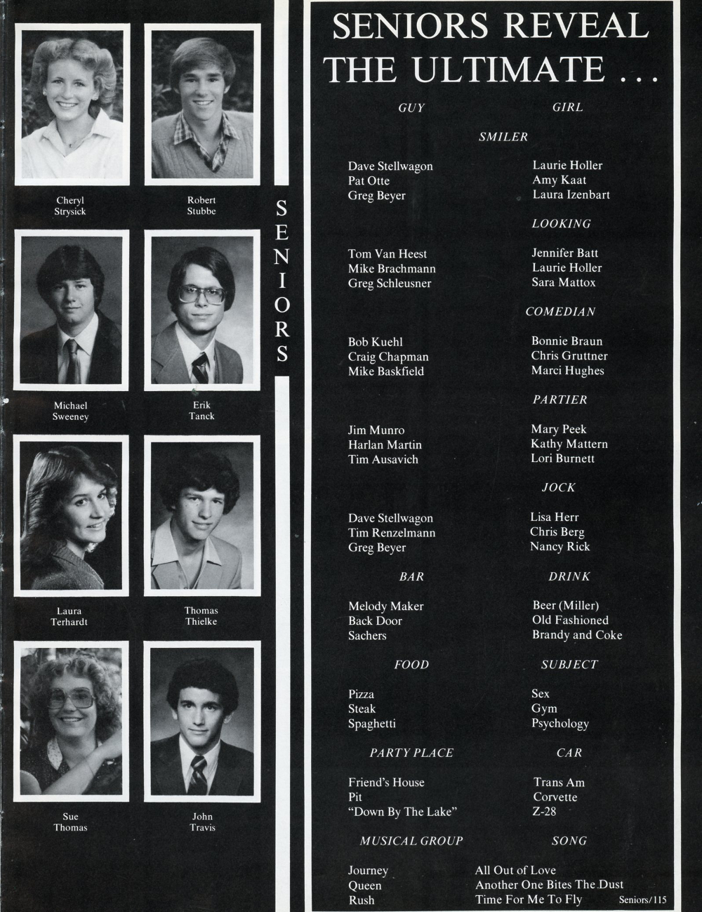 1981 Sheboygan South High School, Page 115: Cheryl Strysick, Robert Stubbe, Michael Sweeney, Erik Tanck, Laura Terhardt, Thomas Thielke, Sue Thomas, John Travis.
