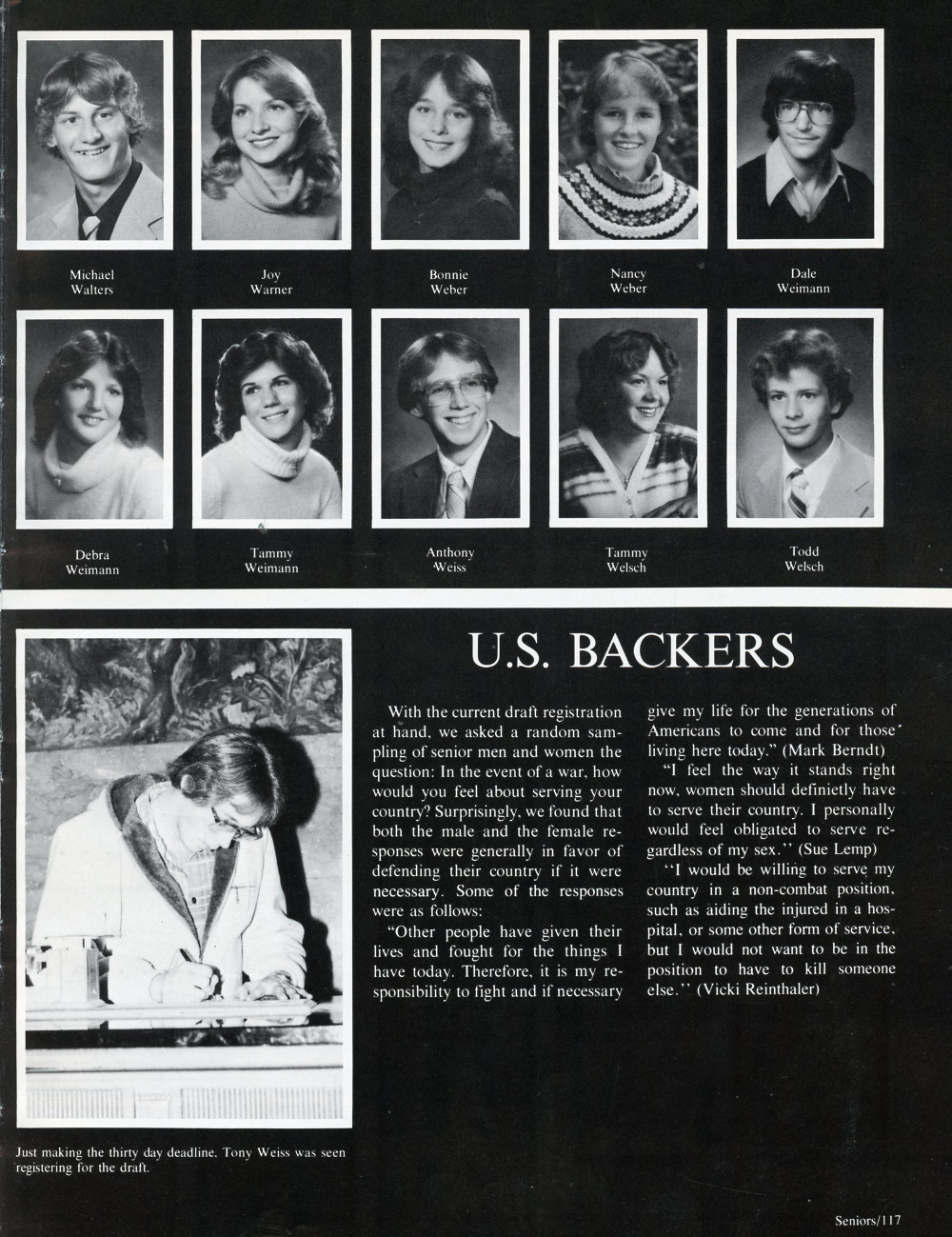 1981 Sheboygan South High School, Page 117: Michael Walters, Joy Warner, Bonnie Weber, Nancy Weber, Dale Weimann, Debra Weimann, Tammy Weimann, Anthony Weiss, Tammy Welsch, Todd Welsch.
