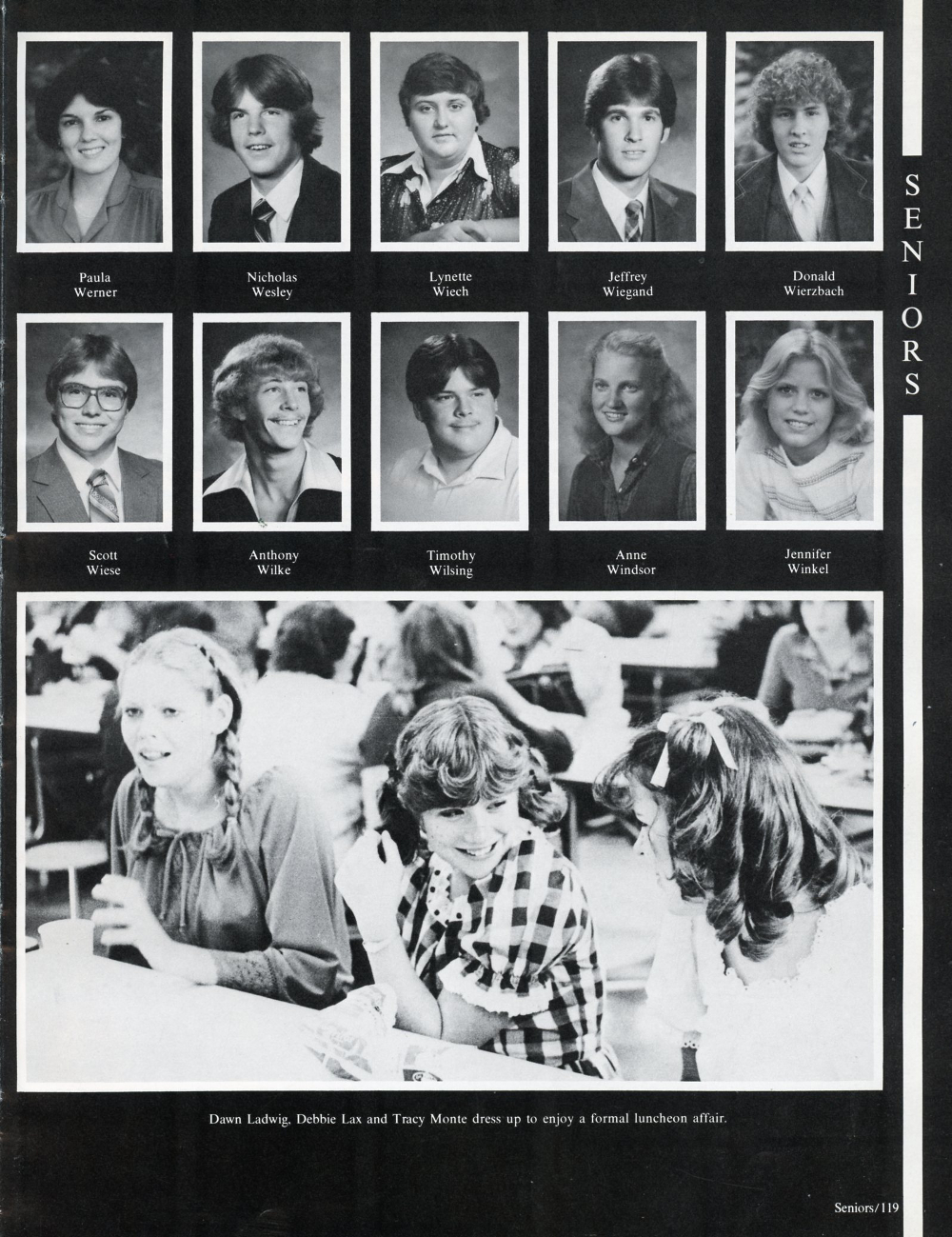 1981 Sheboygan South High School, Page 119: Paula Werner, Nicholas Wesley, Lynette Wiech, Jeffrey Wiegand, Donald Wierzbach, Scott Wiese, Anthony Wilke, Timothy Wilsing, Anne Windsor, Jennifer Winkel.