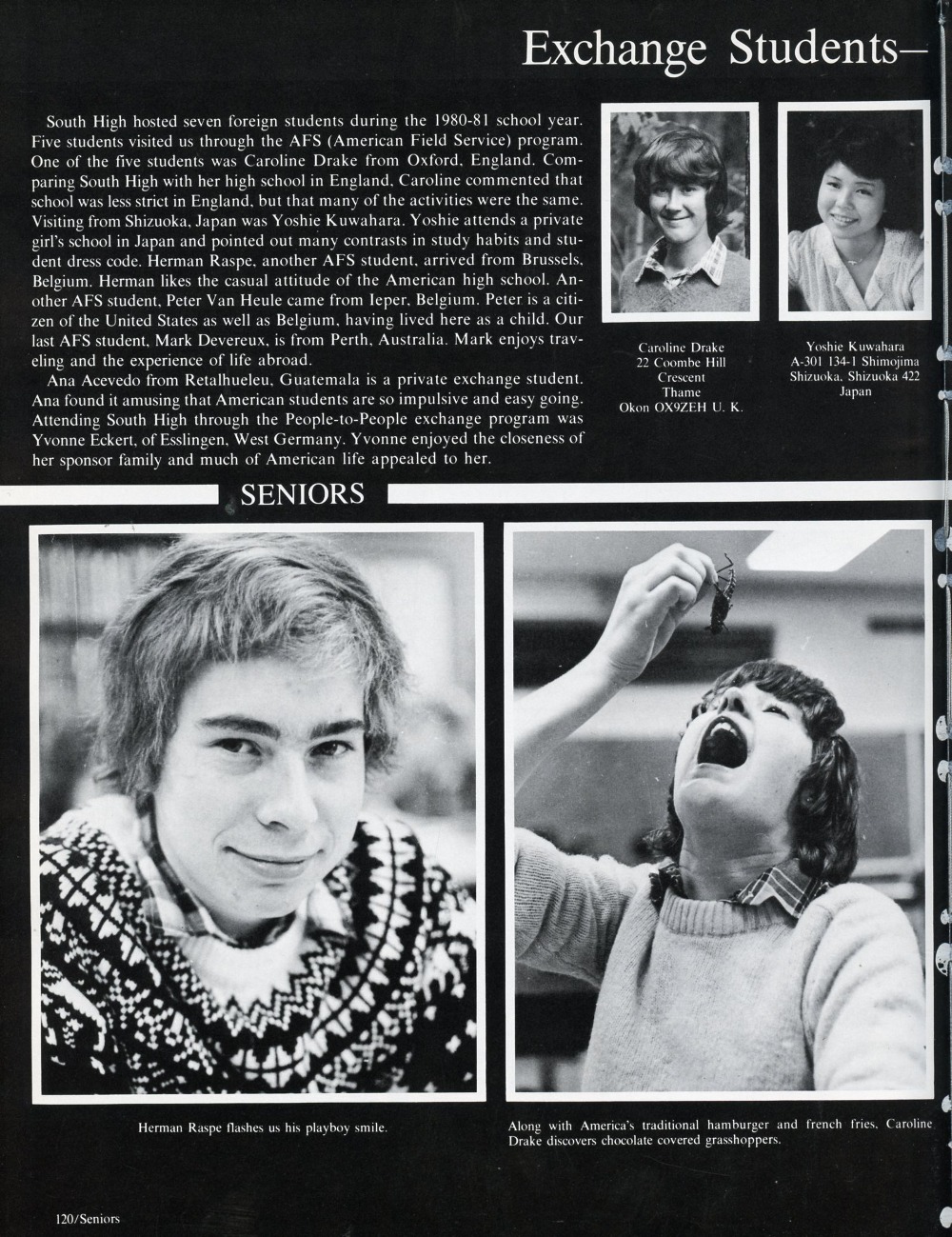 1981 Sheboygan South High School, Page 120: Caroline Drake, Yoshie Kuwahara.