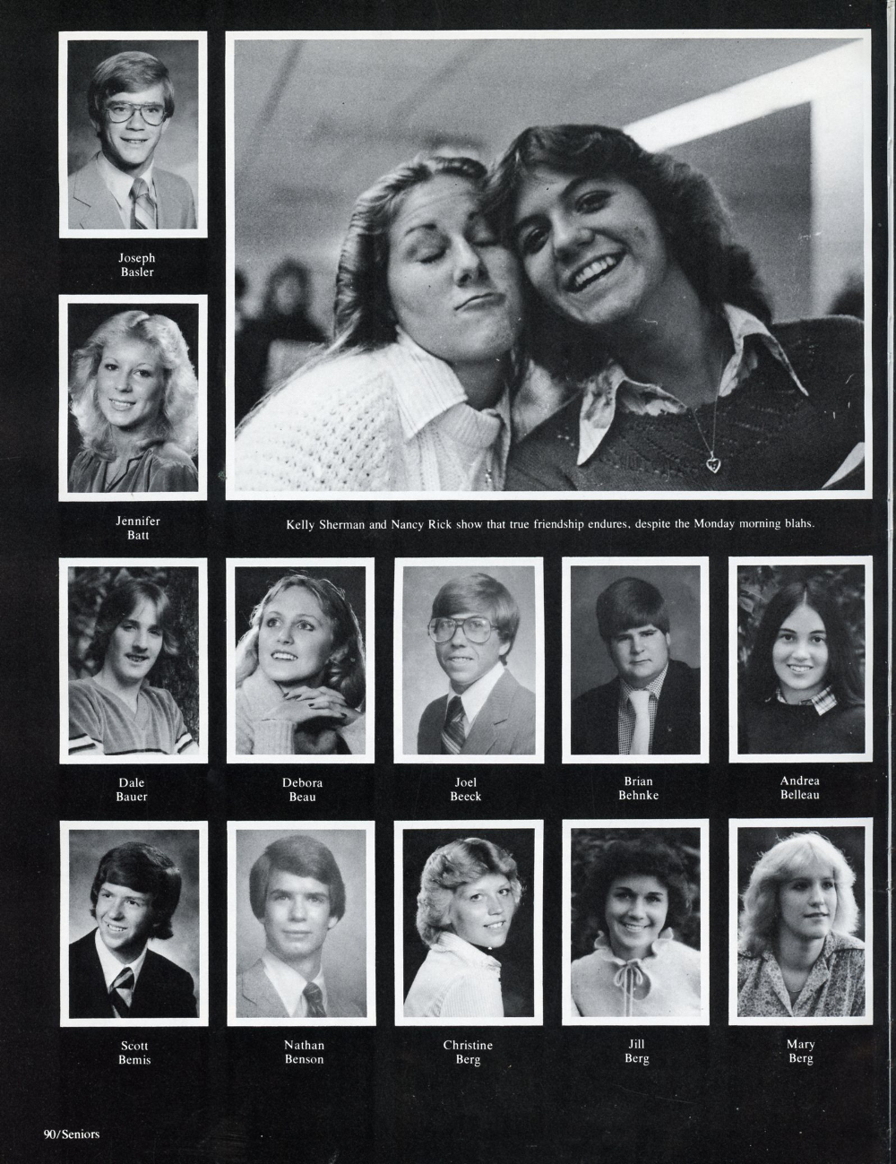 1981 Sheboygan South High School, Page 90: Joseph Basler, Jennifer Batt, Dale Bauer, Debora Beau, Joel Beeck, Brian Behnke, Andrea Belleau, Scott Bemis, Nathan Benson, Christine Berg, Jill Berg, Mary Berg.