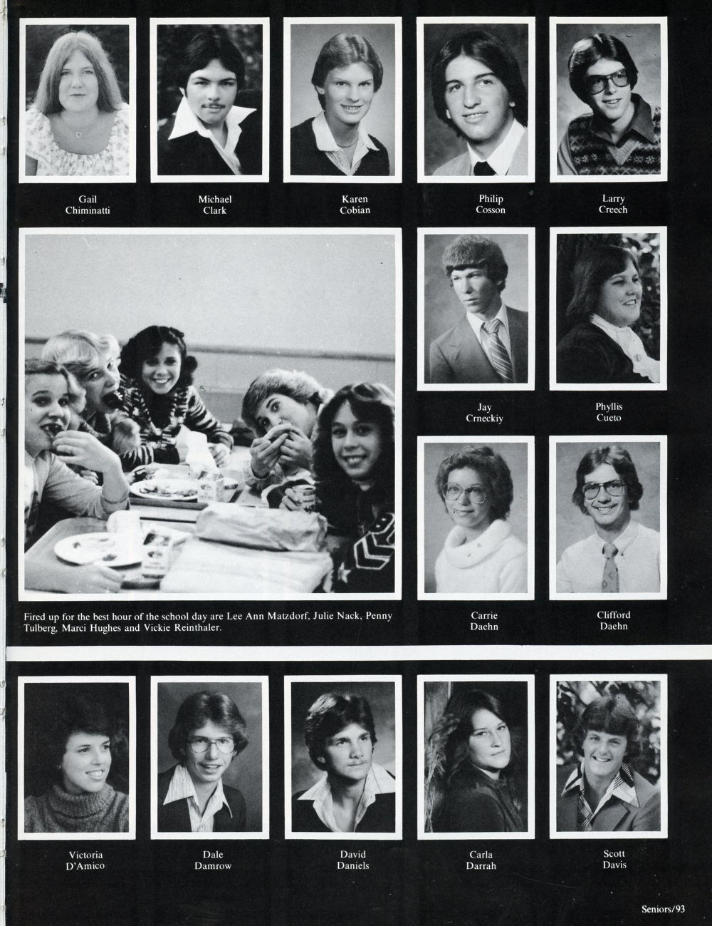 1981 Sheboygan South High School, Page 93: Gail Chiminatti, Michael Clark, Karen Cobian, Philip Cosson, Larry Creech, Jay Crneckiy, Phyllis Cueto, Carrie Daehn, Clifford Daehn, Victoria D'Amico, Dale Damrow, David Daniels, Carla Darrah, Scott Davis.