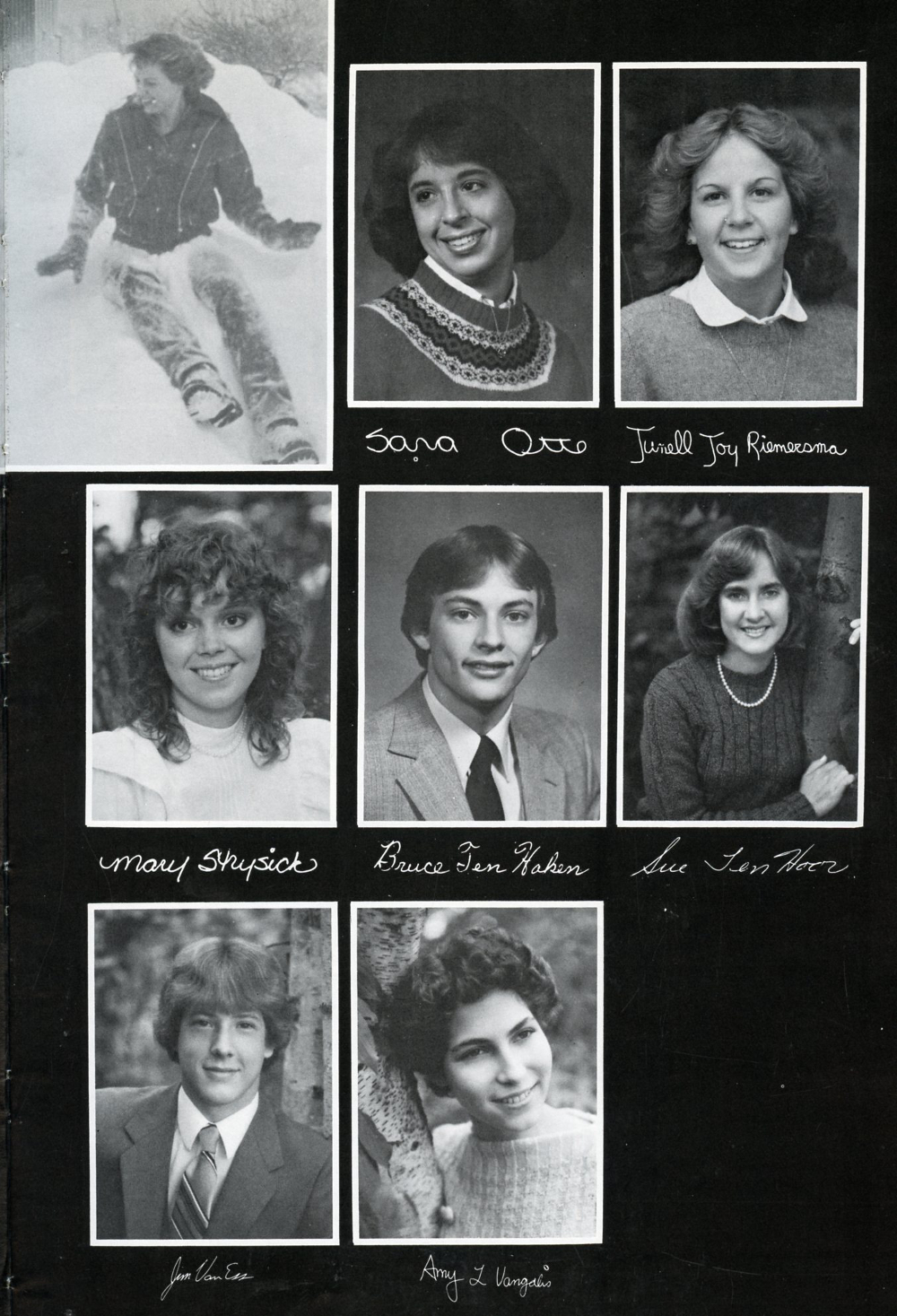 1982 Sheboygan County Christian High School, Page 19: Sara Otte, Junell Joy Riemersma, Mary Strysick, Bruce Tan Haken, Sue Ten Hoor, Jim Van Ess, Amy L. Vangalis.