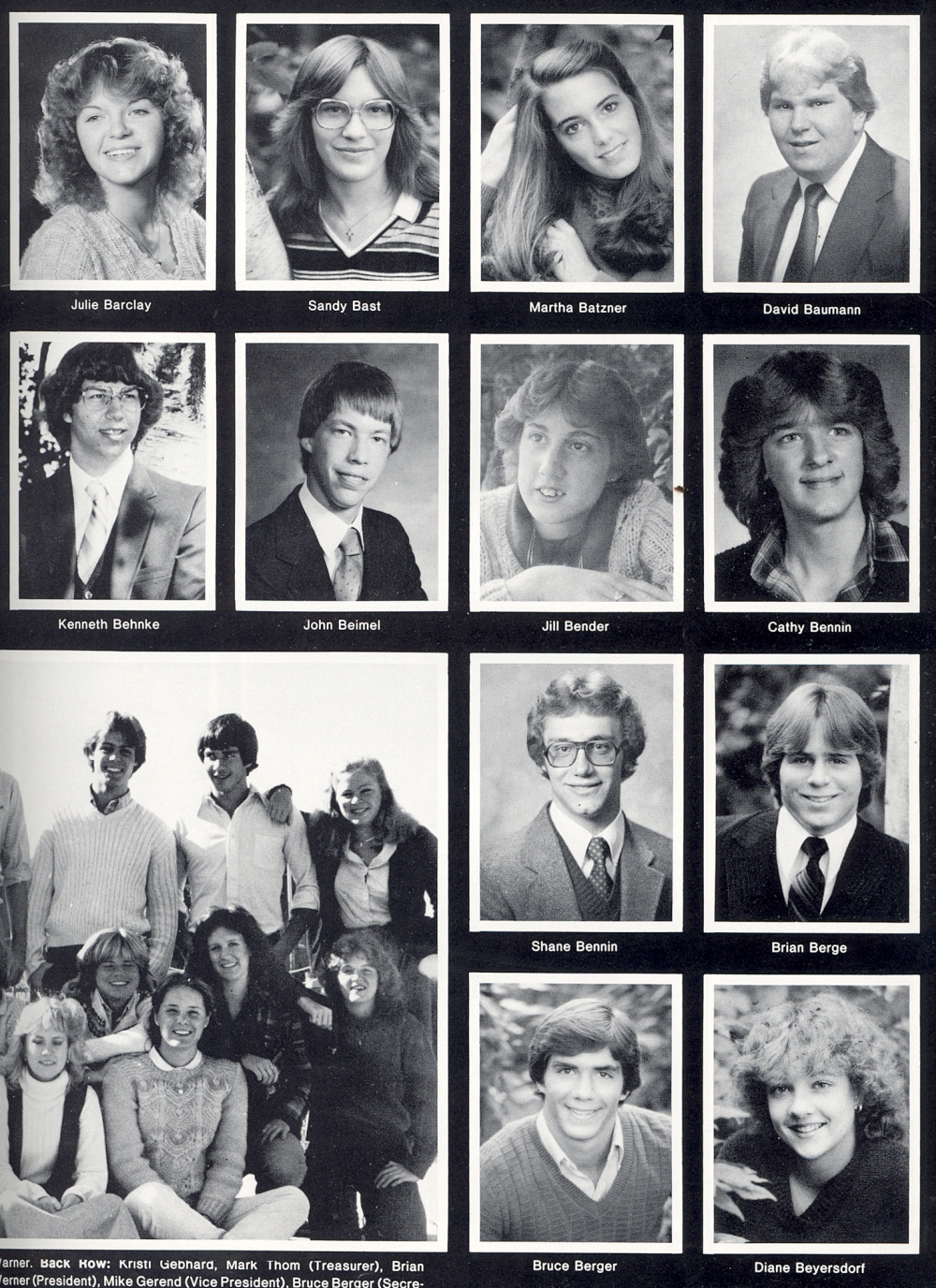 1982 Sheboygan North High School, Page 111. Julie Barclay, Sandy Bast, Martha Batzner, David Baumann, Kenneth Behnke, John Beimel, Jill Bender, Cathy Bennin, Shane Bennin, Brian Berge, Bruce Berger, Diane Beyersdorf.