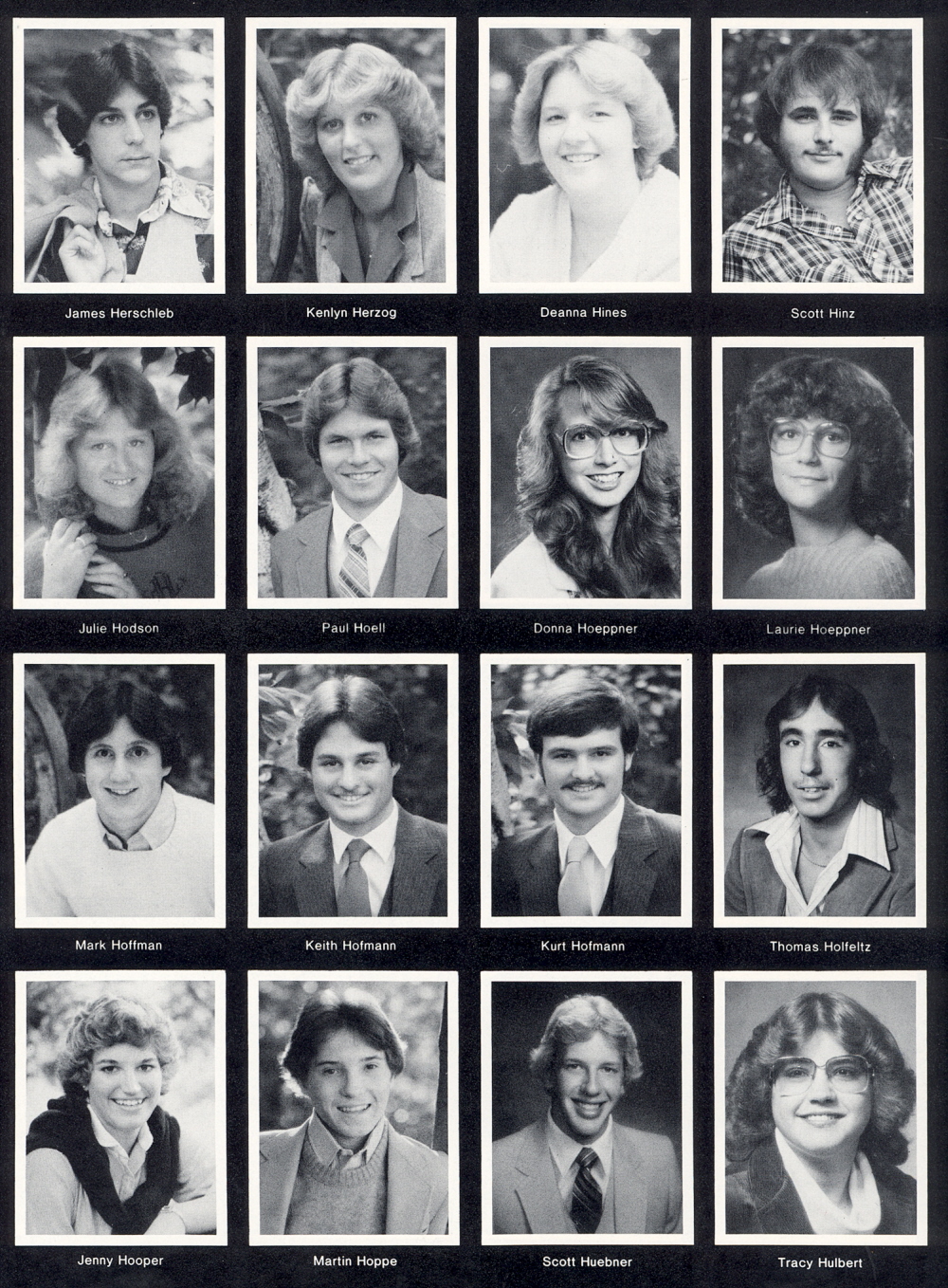 1982 Sheboygan North High School, Page 122. James Herschleb, Kenlyn Herzog, Deanna Hines, Scott Hinz, Julie Hodson, Paul Hoell, Donna Hoeppner, Laurie Hoeppner, Mark Hoffman, Keith Hofmann, Kurt Hofmann, Thomas Holfeltz, Jenny Hooper, Martin Hoppe, Scott Huebner, Tracy Hulbert.