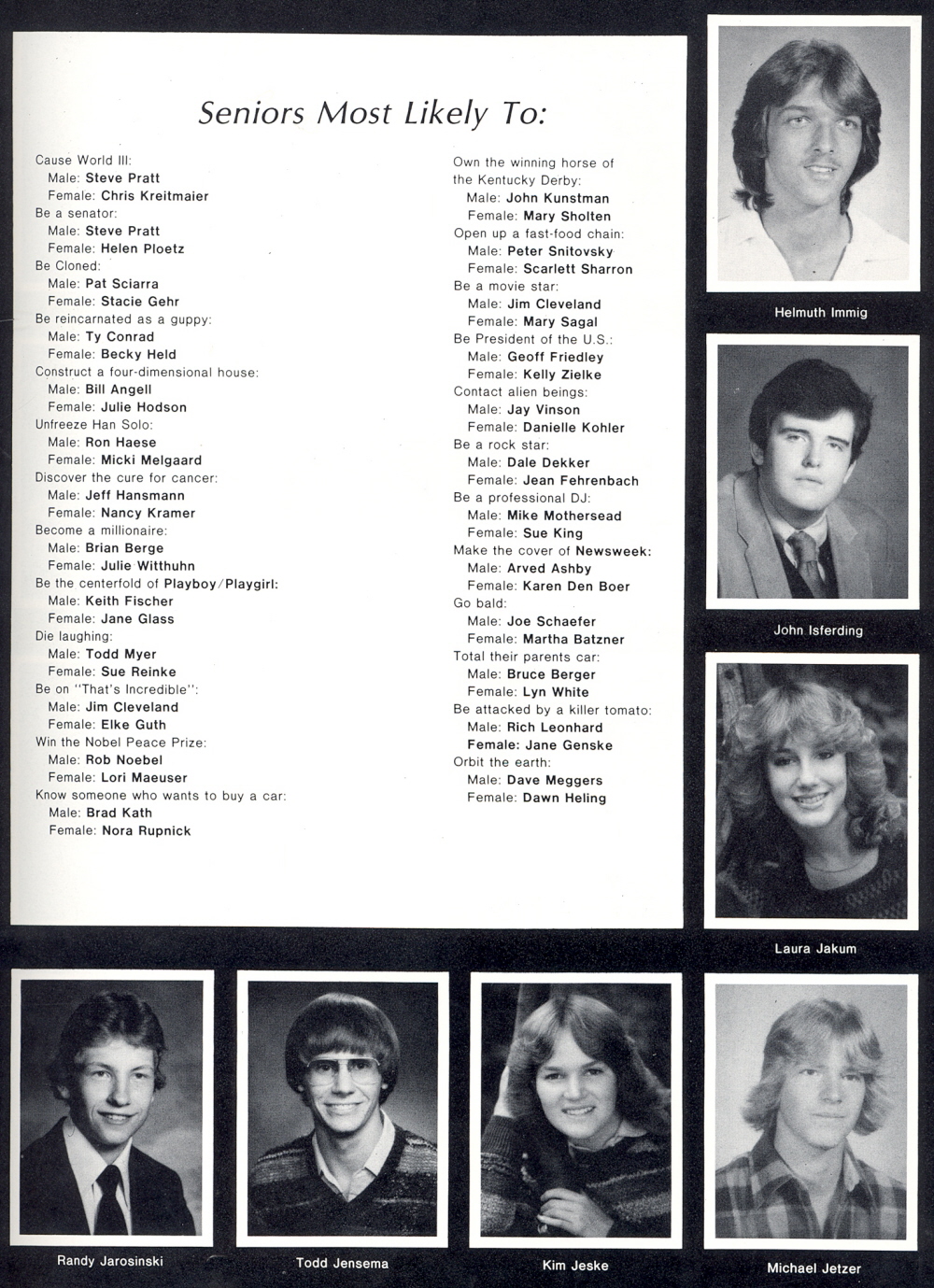 1982 Sheboygan North High School, Page 123. Helmuth Immig, John Isferding, Laura Jakum, Randy Jarosinski, Todd Jensema, Kim Jeske, Michael Jetzer.