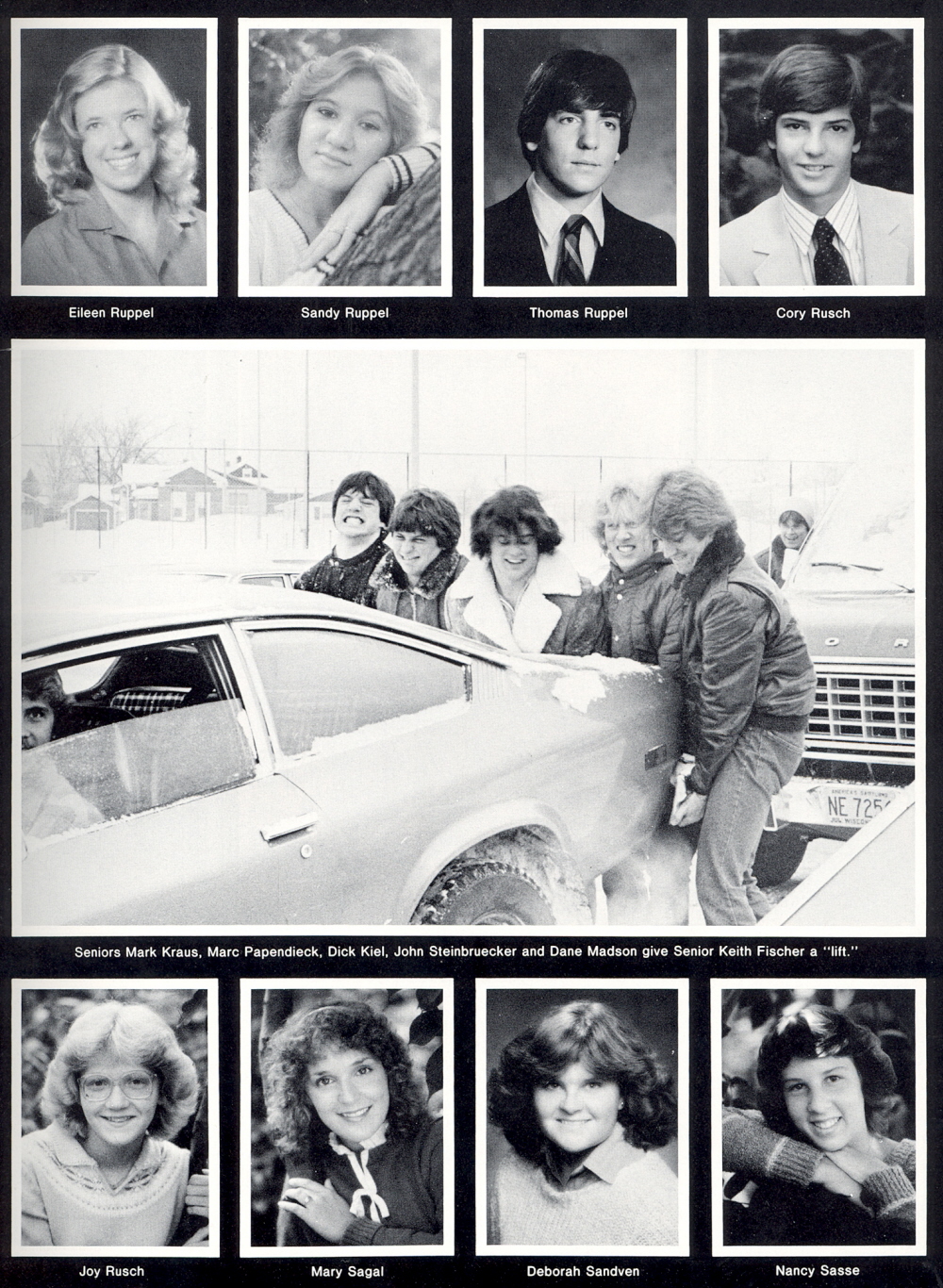 1982 Sheboygan North High School, Page 135. Eileen Ruppel, Sandy Ruppel, Thomas Ruppel, Cory Rusch, Joy Rusch, Mary Sagal, Deborah Sandven, Nancy Sasse.