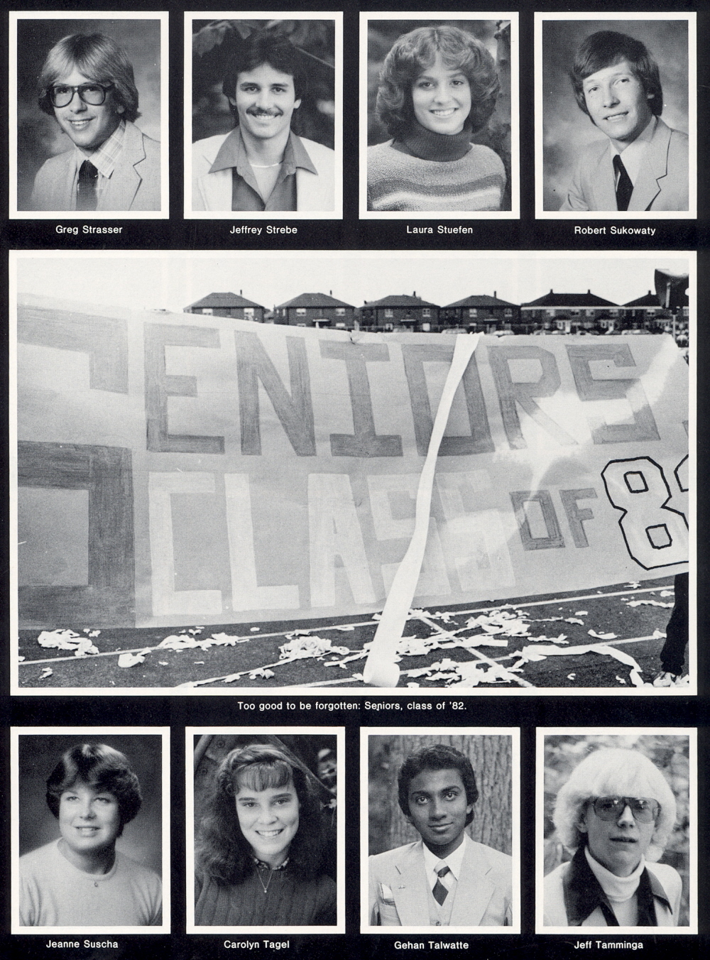 1982 Sheboygan North High School, Page 140. Greg Strasser, Jeffrey Strebe, Laura Stuefen, Robert Sukowaty, Jeanne Suscha, Carolyn Tagel, Gehan Talwatte, Jeff Tamminga.