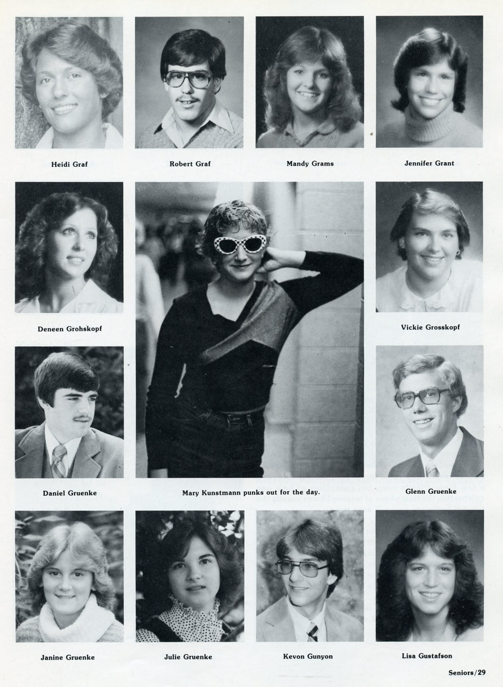 1982 Sheboygan South High School, Page 29: Heidi Graf, Robert Graf, Mandy Grams, Jennifer Grant, Deneen Grohskopf, Vickie Grosskopf, Daniel Gruenke, Glenn Gruenke, Janine Gruenke, Julie Gruenke, Kevon Gunyon, Lisa Gustafson.
