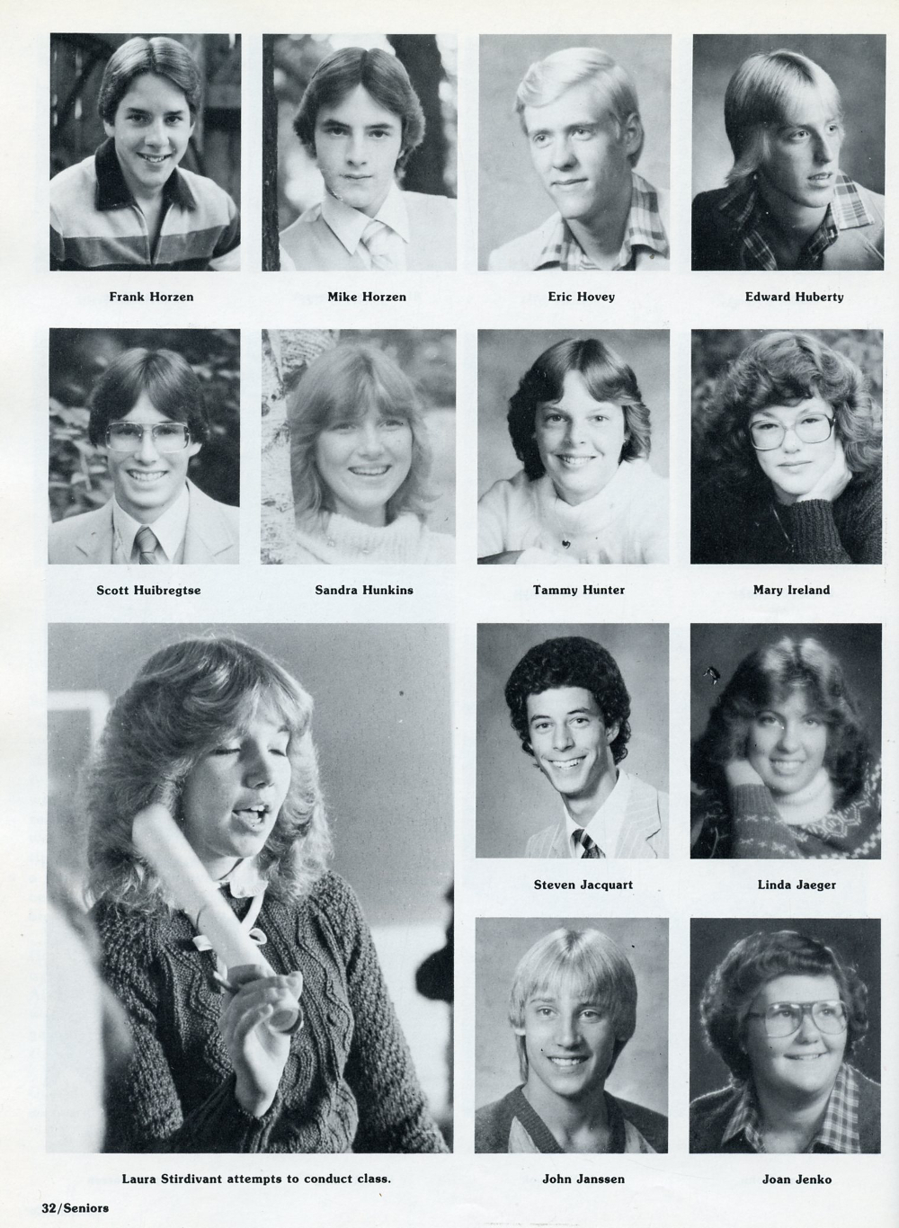 1982 Sheboygan South High School, Page 32: Frank Horzen, Mike Horzen, Eric Hovey, Edward Huberty, Scott Huibregtse, Sandra Hunkins, Tammy Hunter, Mary Ireland, Steven Jacquart, Linda Jaeger, John Jenssen, Joan Jenko.