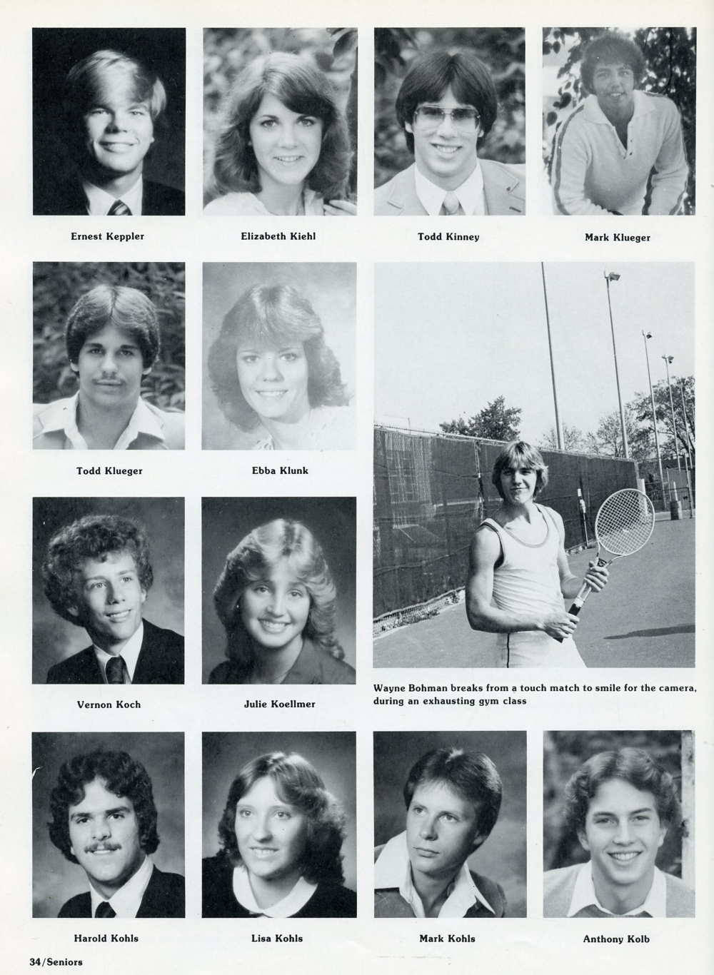 1982 Sheboygan South High School, Page 34: Ernest Keppler, Elizabeth Kiehl, Todd Kinney, Mark Klueger, Todd Klueger, Ebba Klunk, Vernon Koch, Julie Koellmer, Harold Kohls, Lisa Kohls, Mark Kohls, Anthony Kolb.