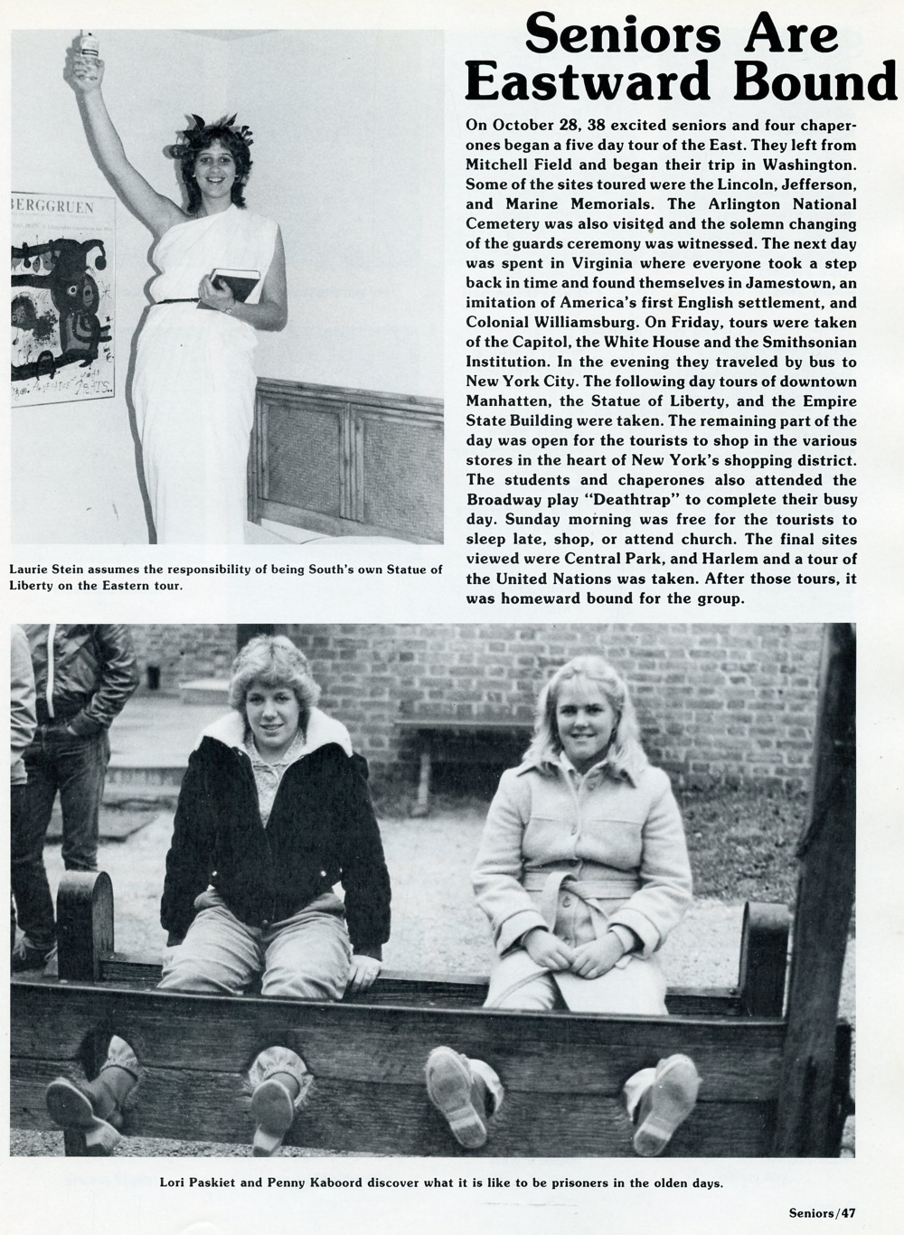 1982 Sheboygan South High School, Page 47: Seniors Are Eastward Bound.
