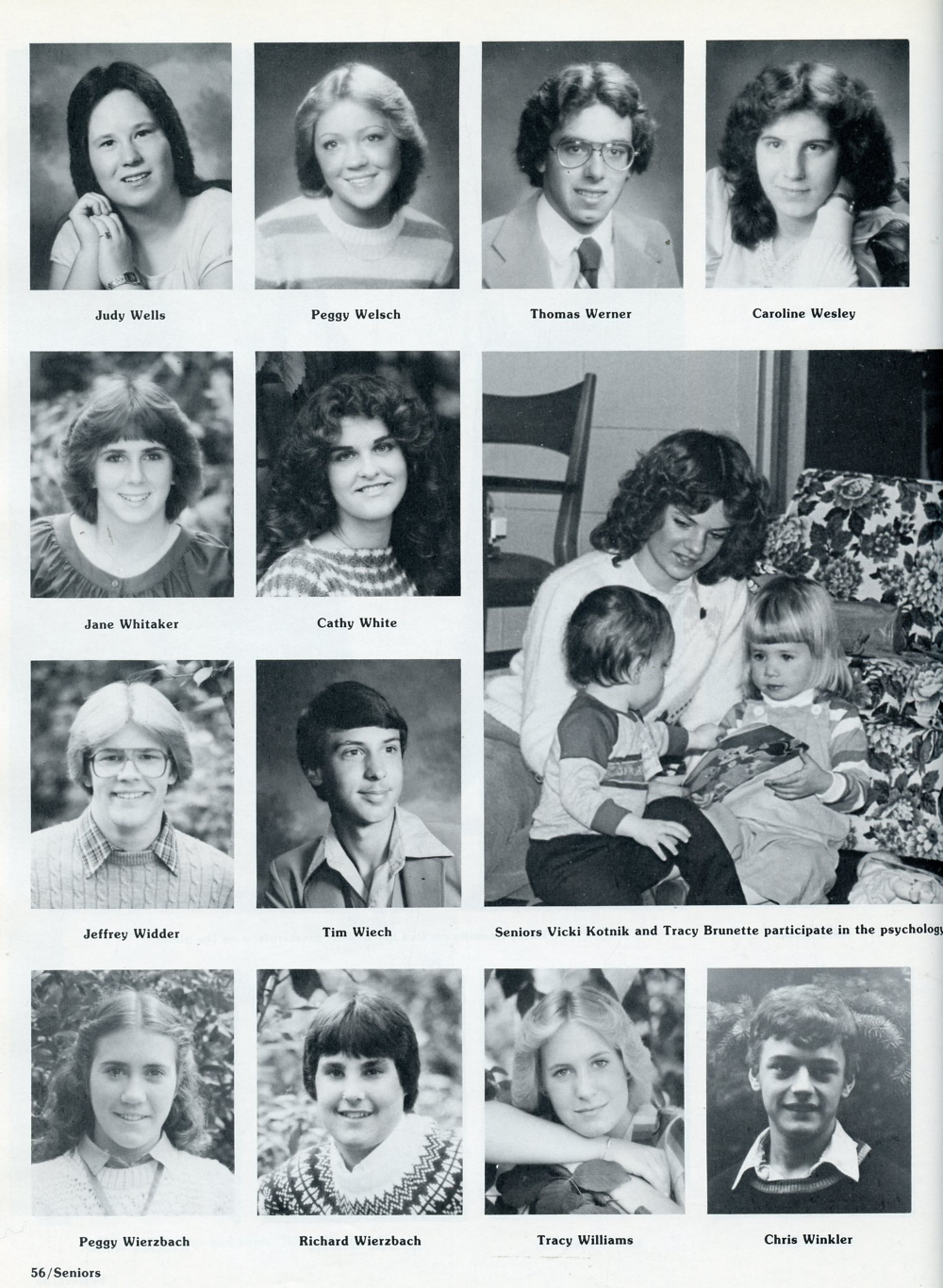 1982 Sheboygan South High School, Page 56: Judy Wells, Peggy Welsch, Thomas Werner, Caroline Wesley, Jane Whitaker, Cathy White, Jeffrey Widder, Tim Wiech, Peggy Wierzbach, Richard Wierzbach, Tracy Williams, Chris Winkler.