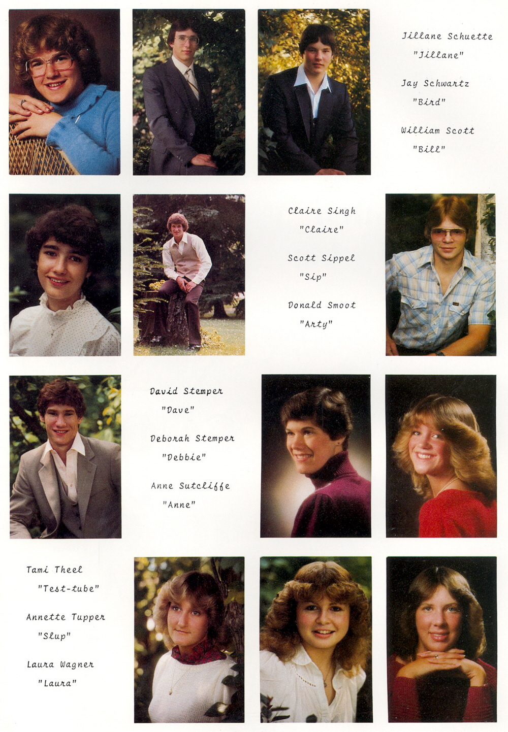 1983 Elkhart Lake High School, Page 103. Jillane Schuette, Jay Schwartz, William Scott, Claire Singh, Scott Sippel, Donald Smoot, David Stemper, Deborah Stemper, Anne Sutcliffe, Tami Theel, Annette Tupper, Laura Wagner.
