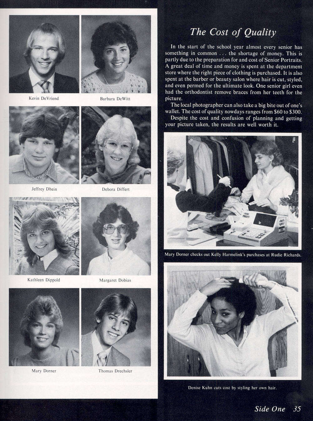 1983 Sheboygan North High School, Page 35: Kevin DeVriend, Barbara DeWitt, Jeffrey Dhein, Debora Differt, Kathleen Dippold, Margaret Dobias, Mary Dorner, Thomas Drechsler.