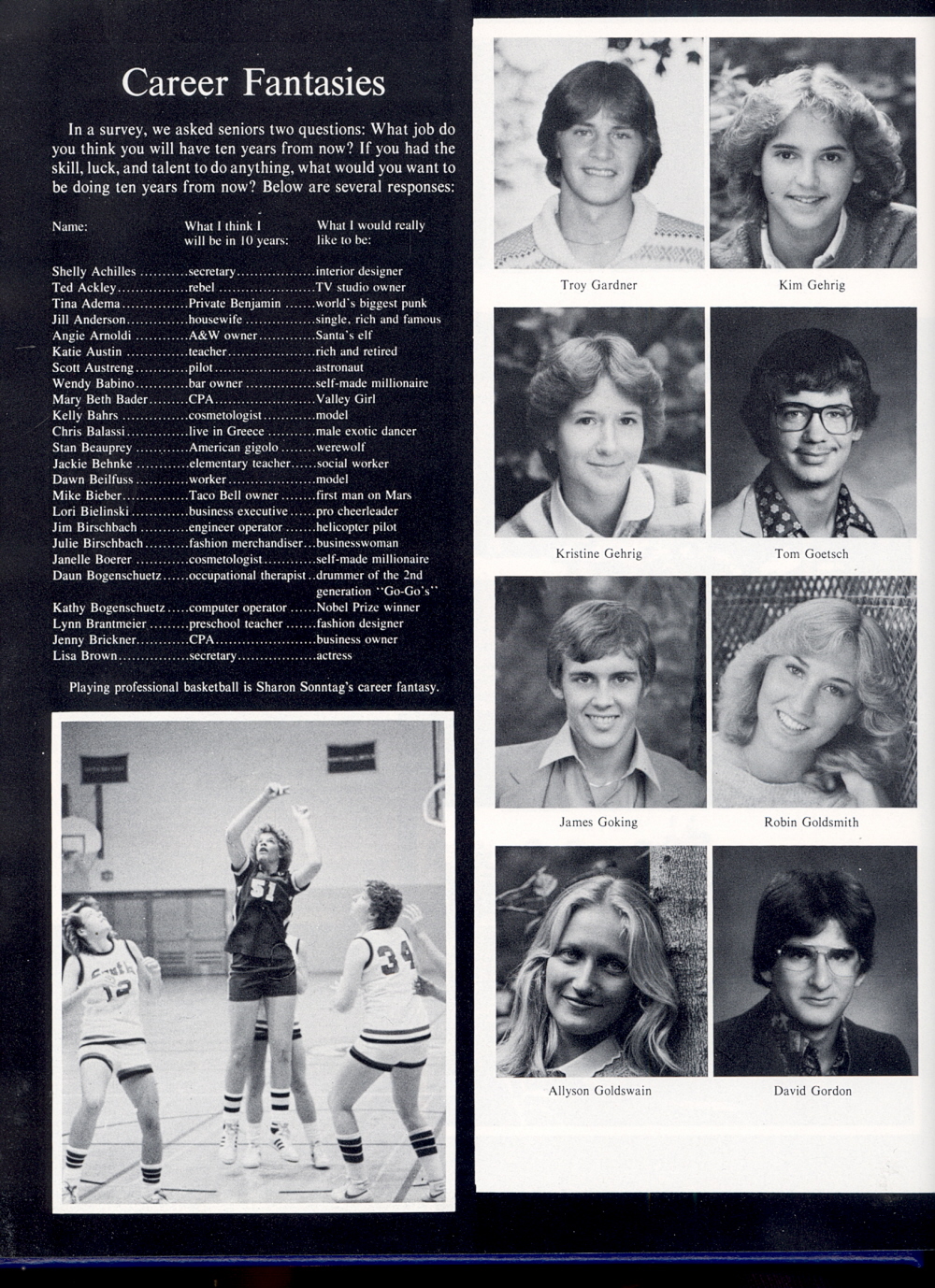 1983 Sheboygan North High School, Page 38: Troy Gardner, Kim Gehrig, Kristine Gehrig, Tom Goetsch, James Goking, Robin Goldsmith, Allyson Goldswain, David Gordon.