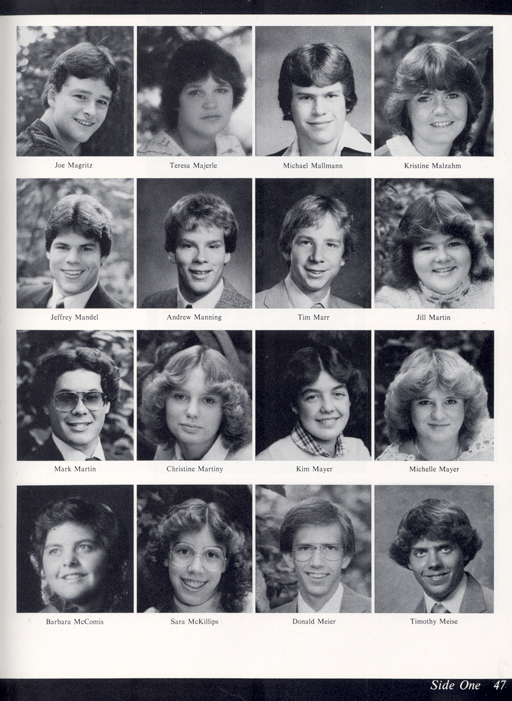 High School, Page 47: Joe Magritz, Teresa Majerle, Michael Mallmann, Kristine Malzahn, Jeffrey Mandel, Andrew Manning, Tim Marr, Jill Martin, Mark Martin, Christine Martiny, Kim Mayer, Michelle Mayer, Barbara McComis, Sara McKillips, Donald Meier, Timothy Meise.