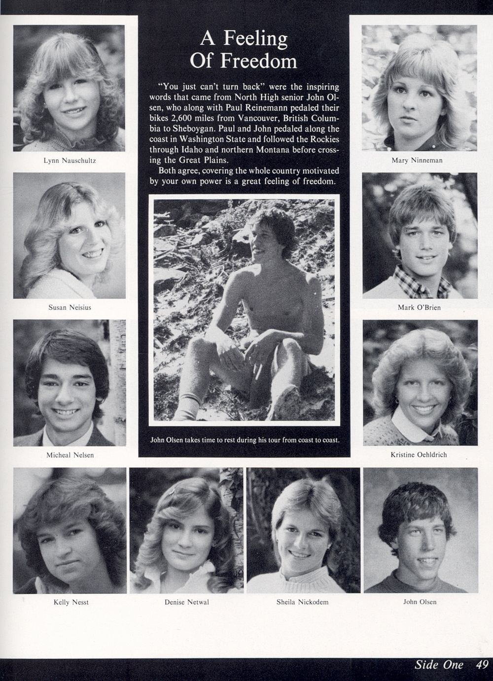 1983 Sheboygan North High School, Page 49: Lynn Nauschultz, Susan Neisius, Michael Nelesen, Kelly Nesst, Denise Netwal, Sheila Nickodem, Mary Ninneman, Mark O'Brien, Kristine Oehldrich, John Olson.