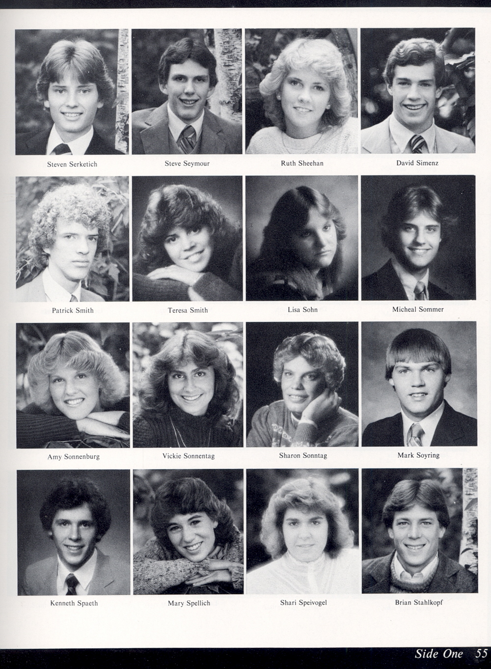 High School, Page 55: Steven Serketich, Steve Seymour, Ruth Sheehan, David Simenz, Patrick Smith, Teresa Smith, Lisa Sohn, Michael Sommer, Amy Sonnenburg, Vickie Sonnentag, Sharon Sonntag, Mark Soyring, Kenneth Spaeth, Mary Spellich, Shari Spielvogel, Brian Stahlkopf.