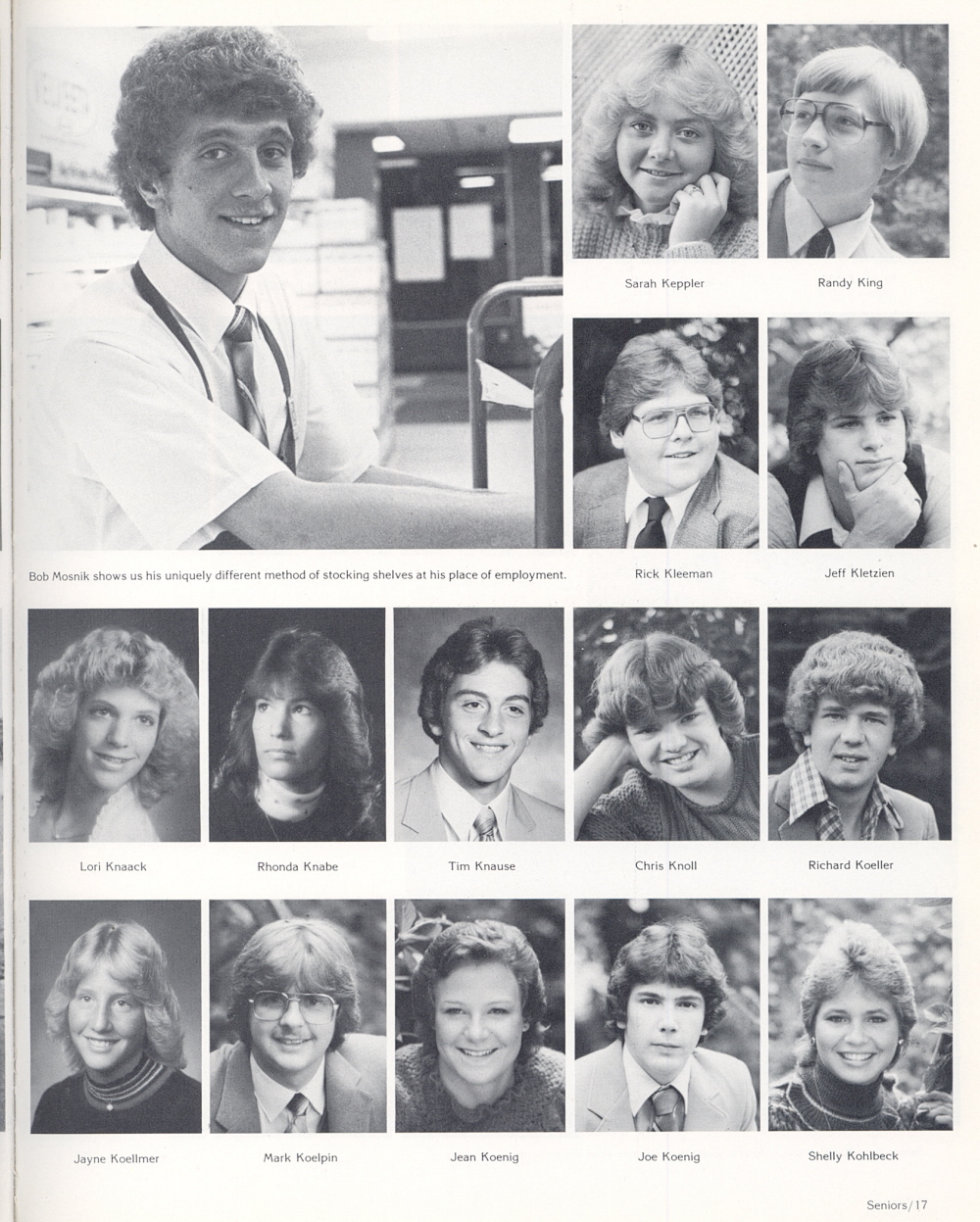 1983 Sheboygan South High School, Page 17: Sarah Keppler, Randy King, Rick Kleeman, Jeff Kletzien, Lori Knaack, Rhonda Knabe, Tim Knause, Chris Knoll, Richard Koeller, Jayne Koellmer, Mark Koelpin, Jean Koenig, Joe Koenig, Shelly Kohlbeck.